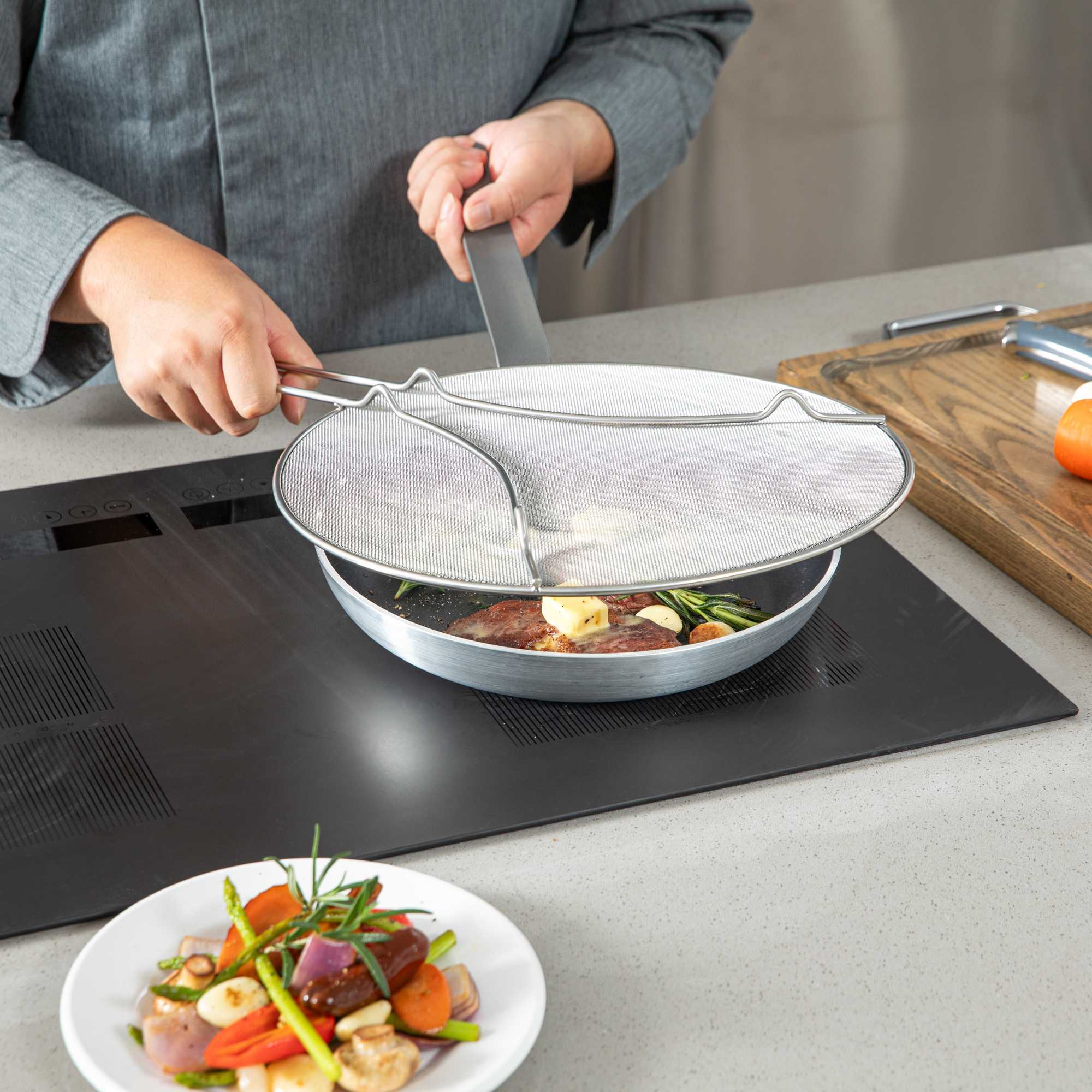 - Fine mesh shield reduces oil splatter for cleaner stovetops