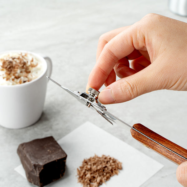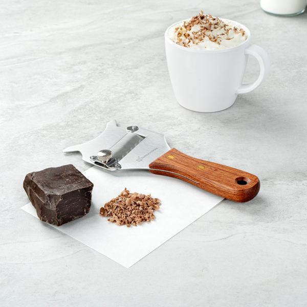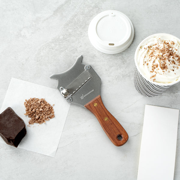 - Chocolate shaver peels off flakes from chocolate bars to use as garnishes
