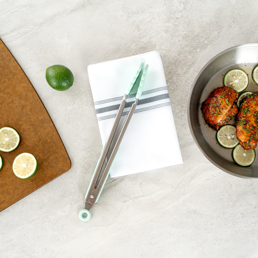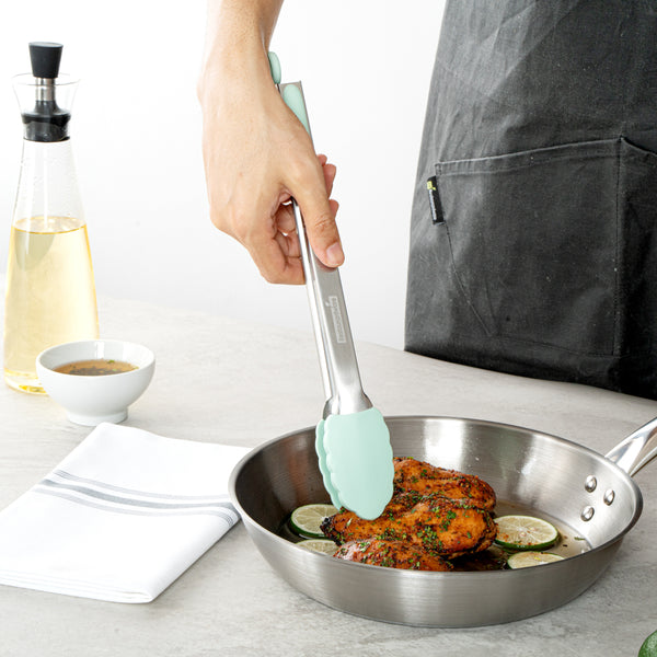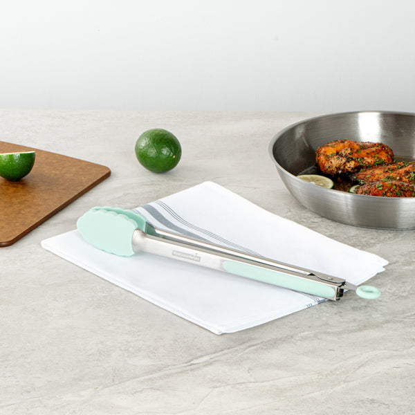 These professional chef tongs are available in two sizes and an array of appealing colors to match individual kitchen aesthetics. Also available as a set of two.