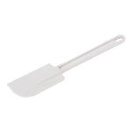 Mix ingredients with our Met Lux White Rubber Spatula. Featuring a flat and flexible blade, this handy rubber spatula is ideal for seamlessly scraping mixtures without damaging your mixing bowls. The flat base on the blade of this white spatula prevents the edges from touching countertop surfaces. This rubber baking spatula is inherently dishwasher-safe and built for long-lasting commercial use at your restaurant, cafe, catering event, or other foodservice establishment. Measuring 10 inches long by 2.2 inches wide, this white spatula allows you to comfortably scrape batter off large bowls. Sold in a 1 count box.