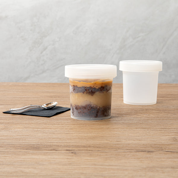 Ensure your desserts stand out with our Mini Serve 10-ounce Round Clear Plastic Dessert Cups. The BPA-free PP plastic of these clear dessert cups ensures they can handle hot and cold foods, making them versatile for all your serving needs. These microwavable plastic dessert glasses can quickly warm up any dessert or keep them at just the right temperature. The clear finish of these recyclable plastic dessert cups enhances visibility and makes your desserts even more appealing. These dessert cups with lids are perfectly stackable, saving valuable storage space in your kitchen or display counter. Plus, these clear dessert cups with lids make it easy for your customers to carry their treats without any hassle. Each of these clear recyclable plastic dessert cups can hold up to 10 ounces of your delicious desserts and measures 3.5 inches in diameter by 3.5 inches in height, making them the perfect size for single servings. Sold in a 25 count box.