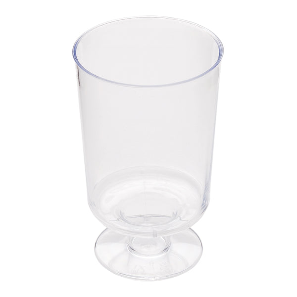 Serve chilled drinks and delightful desserts with charming style with our Mini Serve 1-ounce Round Clear Plastic Lufthansa Drinking Cups with Silver Plastic Mini Forks. Made from high-quality PS plastic, these stemmed glasses, and appetizer forks offer a convenient serving solution as they are disposable for easy cleanup. Designed in a round shape with a sturdy stem, these plastic cups enhance the look of your served treats. These dessert cups can hold up to 5 ounces and are convenient for serving small portions of iced coffees, chilled drinks, mousse, yogurts, puddings, or sundaes. With a shiny silver finish, these cake forks are expertly crafted to elevate your delectable creations and withstand hearty bites, thanks to their robust handles. For space-saving storage, these drinking cups are designed to be stackable. These mousse cups measure 1.5 inches in diameter by 2.5 inches in height and have a capacity of 1 ounce, while the plastic forks measure 4 inches in length. Each order includes 100 cups and 100 forks.
