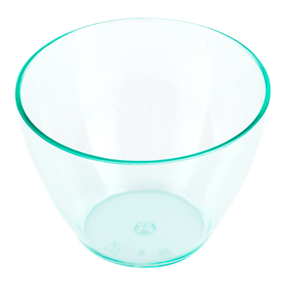 Elegantly serve bite-sized treats with our Mini Serve 2-ounce Round Seagreen Plastic Mini Tasting Bowls with Silver Plastic Mini Forks. These serving bowls are crafted from high-quality plastic with an eye-catching tinted-seagreen finish that showcases frozen yogurt, gelato, and deconstructed desserts with a pristine presentation. The shiny silver finish of the included plastic forks lends a classy touch while complementing every tablescape. With a capacity of 2 ounces, these seagreen bowls offer a perfect solution for serving miniature bites. These tasting bowls and dessert forks are disposable to provide a quick and easy cleanup for your foodservice establishments. These dessert bowls measure 2 inches in diameter by 1.5 inches in height and have a capacity of 2 ounces, while the included cake forks measure 4 inches in length. Each order includes 100 bowls and 100 forks.