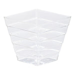 Stylishly serve delectable miniature morsels at your upscale event with our Mini Serve 2-ounce Square Clear Plastic Mini Apogee Kova Cups with Silver Plastic Mini Forks. Crafted from high-quality PS plastic, these dessert cups and appetizer forks create a perfect disposable flatware solution for all venues and catered events. Containing up to 2 ounces, these clear plastic cups are perfect for portioning out delectable appetizers, miniature desserts, or delightful-tasting portions of your culinary creations. Featuring a sleek square design, these disposable cups upgrade the look of any tablescape. With a shiny silver finish and sturdy handles, these plastic forks are suitable for effortlessly enhancing the presentation of your tantalizing dishes and scooping up hearty portions of gelato or polenta. For a convenient take out solution, pair these mousse cups with their coordinating clear plastic lids (SKU: RWP0305C). These pudding cups measure 2 inches long by 2 inches wide by 1.75 inches tall and have a capacity of 2 ounces, while the included plastic forks measure 4 inches long. Each order includes 100 cups and 100 forks.