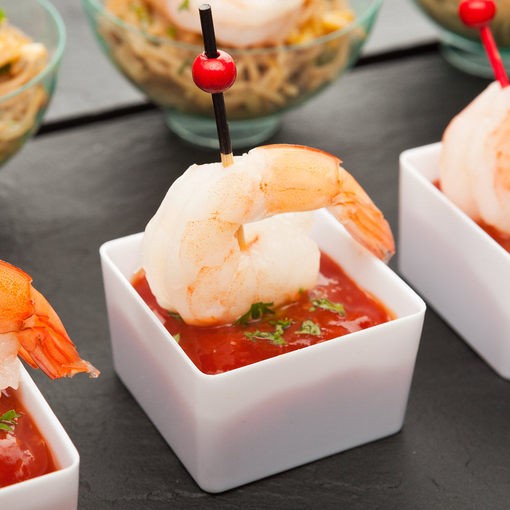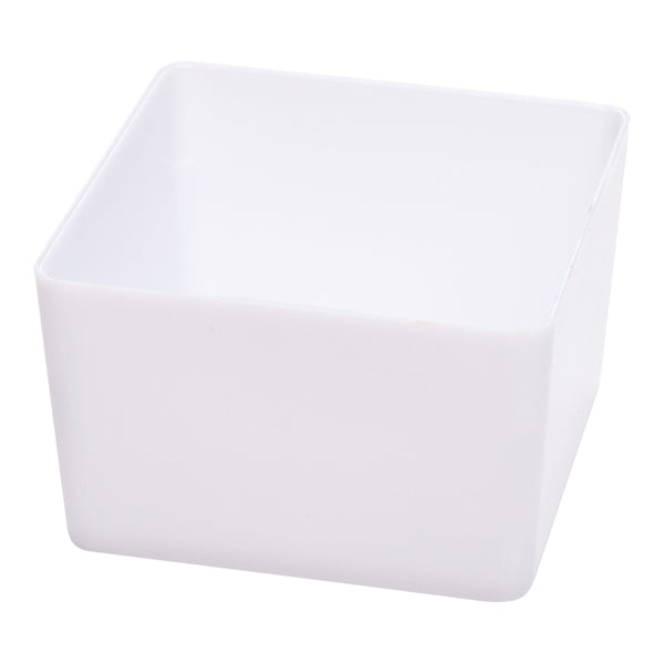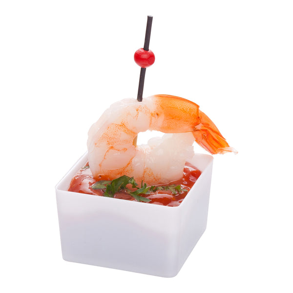 Bring your miniature dessert presentation to the next level with our Mini Serve 2-ounce Square White Plastic Short Quadrato Cups with Silver Plastic Mini Forks. Crafted from premium plastic, these white cups and cake forks are conveniently disposable, making them an ideal option for quick and easy after-service cleanup. These tasting cups can hold up to 2 ounces and are perfect for displaying individual bite-sized treats in style at any catered event or banquet. Featuring a trendy square shape and chic white finish, these plastic cups effortlessly enhance puddings, parfaits, sundaes and other sweet treats. With a shiny silver finish and sturdy handles, these plastic forks are designed to stand up to substantial bites of any dish while elevating your table setting. These parfait cups measure 1.75 inches long by 1.75 inches wide by 1 inch tall and have a capacity of 2 ounces, while the included mini forks measure 4 inches long. Each order includes 100 cups and 100 forks.