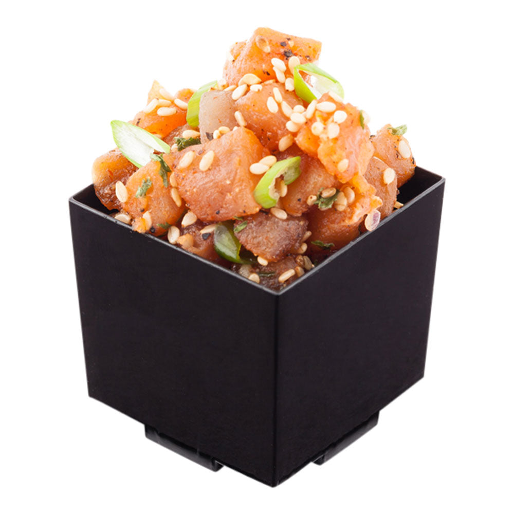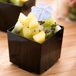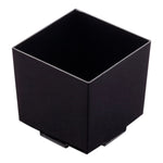 Upgrade your event with our Bundle: Mini Serve 100 3-ounce Square Black Plastic Quadrato Cups with 100 Silver Plastic 4-inch Mini Spoons. This bundle includes durable black quadrato cups constructed from plastic, ensuring they won't easily crack while in use, and sleek silver plastic mini spoons designed to enhance the presentation of your tantalizing dishes effortlessly. The smooth rim on these plastic cups averts accidental scratching, enhancing the overall eating experience, while the shiny silver finish of the spoons adds an elegant touch. With their square, stackable design, these plastic appetizer cups are a space-efficient solution, perfect for large events, and the strong, sturdy handles of the spoons can stand up to hefty bites and big scoops. The deep black color of these square cups lends an attractive aesthetic, making them a great fit for any occasion, while the 4-inch plastic spoons are the ideal size to accompany miniature tuna tartare or personal-sized strawberry shortcakes. These 3-ounce cups measure 1.5 inches in length by 1.5 inches in width by 1.75 inches in height and is excellent for serving small appetizers, desserts, or beverages. Each order includes 100 plastic cups and 100 mini spoons.