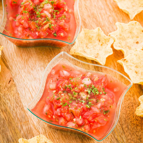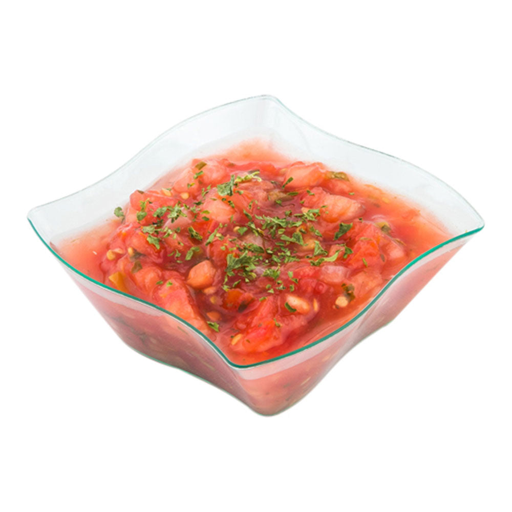 Elevate your event presentation with our Bundle: Mini Serve 100 6-ounce Square Seagreen Plastic Aqua Bowls with 100 Silver Plastic 4-inch Mini Spoons. This bundle includes our square seagreen plastic bowls and shiny silver plastic spoons. Crafted from premium plastic, these serving bowls and spoons are durable and do not crack or warp easily, ensuring reliable performance. With a unique curved design, these food bowls are perfect for serving bite-sized portions of creamy polenta or slow-braised short ribs. The lovely seagreen tint of these serving dishes adds a memorable touch to cocktail parties, banquets, or catering events. Complementing the bowls are these plastic spoons, featuring a shiny silver finish that effortlessly enhances the presentation of your tantalizing dishes. These 4-inch spoons have sturdy handles and can withstand hefty bites of polenta or scoops of gelato. Designed for convenience, these plastic serving bowls and spoons are disposable and can be discarded after use. Measuring 3.25 inches in diameter by 1.5 inches in height, these disposable bowls can hold up to 6 ounces. Each order includes 100 bowls and 100 spoons.
