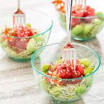 Artfully plate and serve unique appetizers with style using our Mini Serve Square Black Plastic Small Modern Plates with Silver Plastic Mini Forks. Crafted from high-quality PS plastic, these square plates and cake forks are effortlessly disposable, making them the perfect option for catering events, banquets, or restaurants as they provide a quick cleanup. Featuring a glossy black finish and squared design, these serving plates add visual appeal to small servings, while their raised edges provide mess-free serving and handling. With sturdy handles, these plastic forks are ideal for enjoying hearty scoops without compromising their integrity. These black plastic plates measure 4 inches in length by 4 inches in width by 0.5 inches in height, while the silver plastic forks measure 4 inches in length. Each order includes 100 plates and 100 forks.