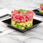 Serve appetizers and desserts in style with our Bundle: Mini Serve 100 Square Black 3.9-inch Plastic Small Modern Plates with 100 Silver Plastic 4-inch Mini Spoons. This bundle includes sturdy disposable plates crafted from premium plastic and 100 plastic spoons. These square plates feature a glossy black finish and a squared design, lending a high-end look to small servings of stuffed dates, canapes, and tarts, while the raised edges prevent messy spills. Complementing the plates are the shiny silver plastic spoons, designed to effortlessly enhance the presentation of your tantalizing dishes, whether it's miniature tuna tartare, personal-sized strawberry shortcakes, hefty bites of polenta, or big scoops of gelato. The 4-inch plastic spoons boast strong and sturdy handles, ensuring a secure grip. These plates measure 3.9 inches in length by 3.9 inches in width and these spoons measure 4 inches in length, making them an ideal choice for cafes, venues, and customers. Each order includes 100 plastic plates and 100 mini spoons.