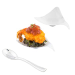 Add sophistication to your event with our Bundle: Mini Serve 100 Triangle White 3-inch Plastic Shooting Star Appetizer Plates with 100 Silver Plastic 4-inch Mini Spoons. This bundle includes one-of-a-kind shooting star plates and shiny silver plastic mini spoons, providing an elevated dining experience. These disposable plates are crafted to be strong, averting the risk of chipping or breaking, while the distinct white wavy scalene design imparts a sleek, polished appearance to each individual serving. Suitable for cold dishes, nuts, or tempting desserts, these premium plastic appetizer plates are perfect for various occasions. These 4-inch plastic spoons feature sturdy handles that can effortlessly scoop up hefty bites of polenta or gelato, enhancing the presentation of your tantalizing dishes. Made from premium plastic, these appetizer spoons are conveniently disposable, making them an ideal choice for cafes and venues. With a 1-ounce capacity and measuring 3 inches in length by 3 inches in width for the plates, and 4 inches in length for the spoons, this bundle offers the ideal size for single servings of appetizers, hors d'oeuvres, or personal-sized treats. Each order includes 100 plastic plates and 100 mini spoons.