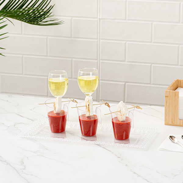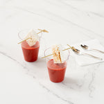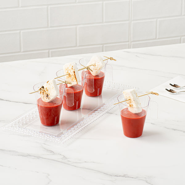 Elevate your dessert presentation with ergonomic ease. Mini Serve Ergonomic Mini Dessert Cups feature a mini handle that provides a comfortable and secure grip, ensuring seamless service of mini dessert cups during bustling events. These dessert shooters boast a sturdy design, perfect for withstanding the demands of outdoor gatherings and minimizing the risk of breakage. Crafted from durable plastic, these dessert shot glasses maintain their crystal-clear appearance while being cold food friendly, making them ideal for chilled treats. The disposable convenience of these cups streamlines cleanup, maximizing efficiency in busy kitchens and allowing staff to focus on delivering exceptional service. Enhance your service with these essential catering cups that measure 2.67 inches in length and width by 3.34 inches in height. Sold in a 100 count box.