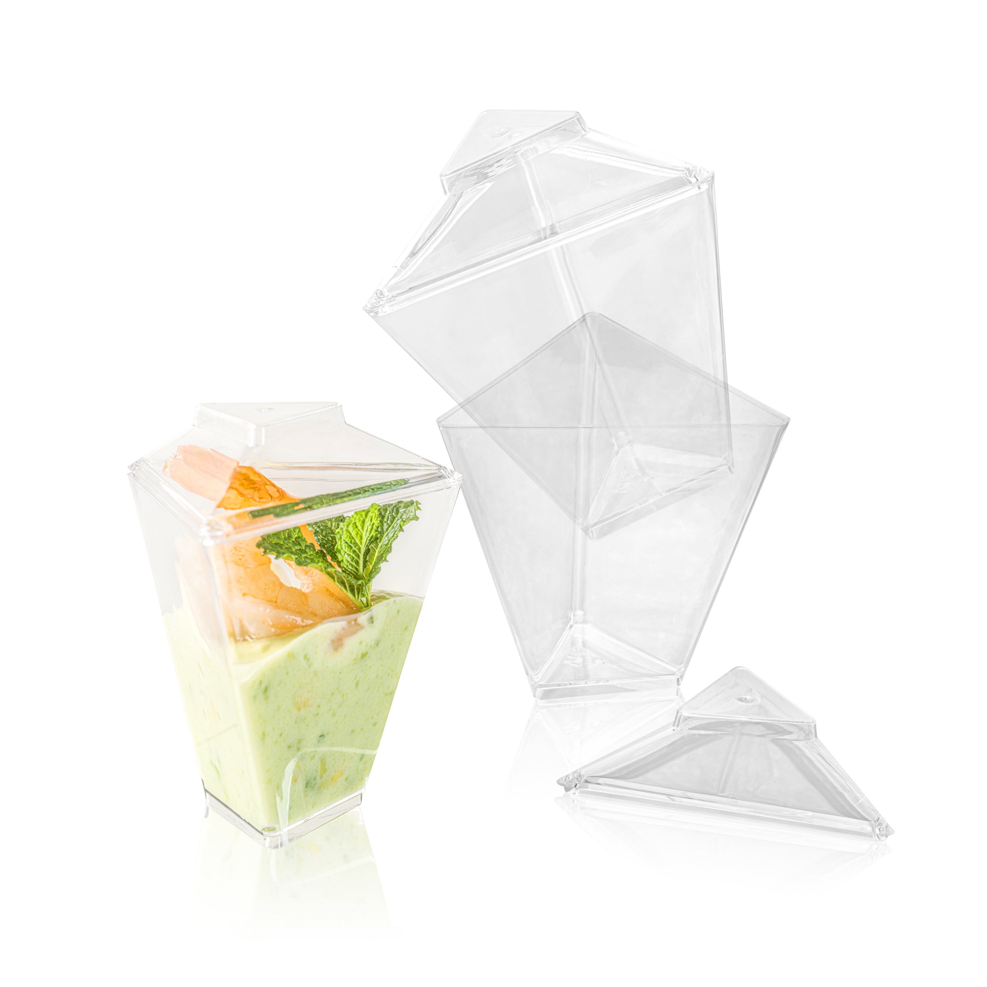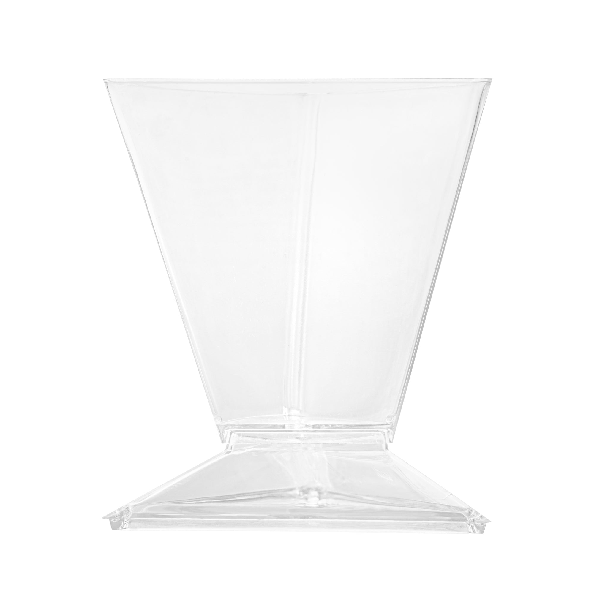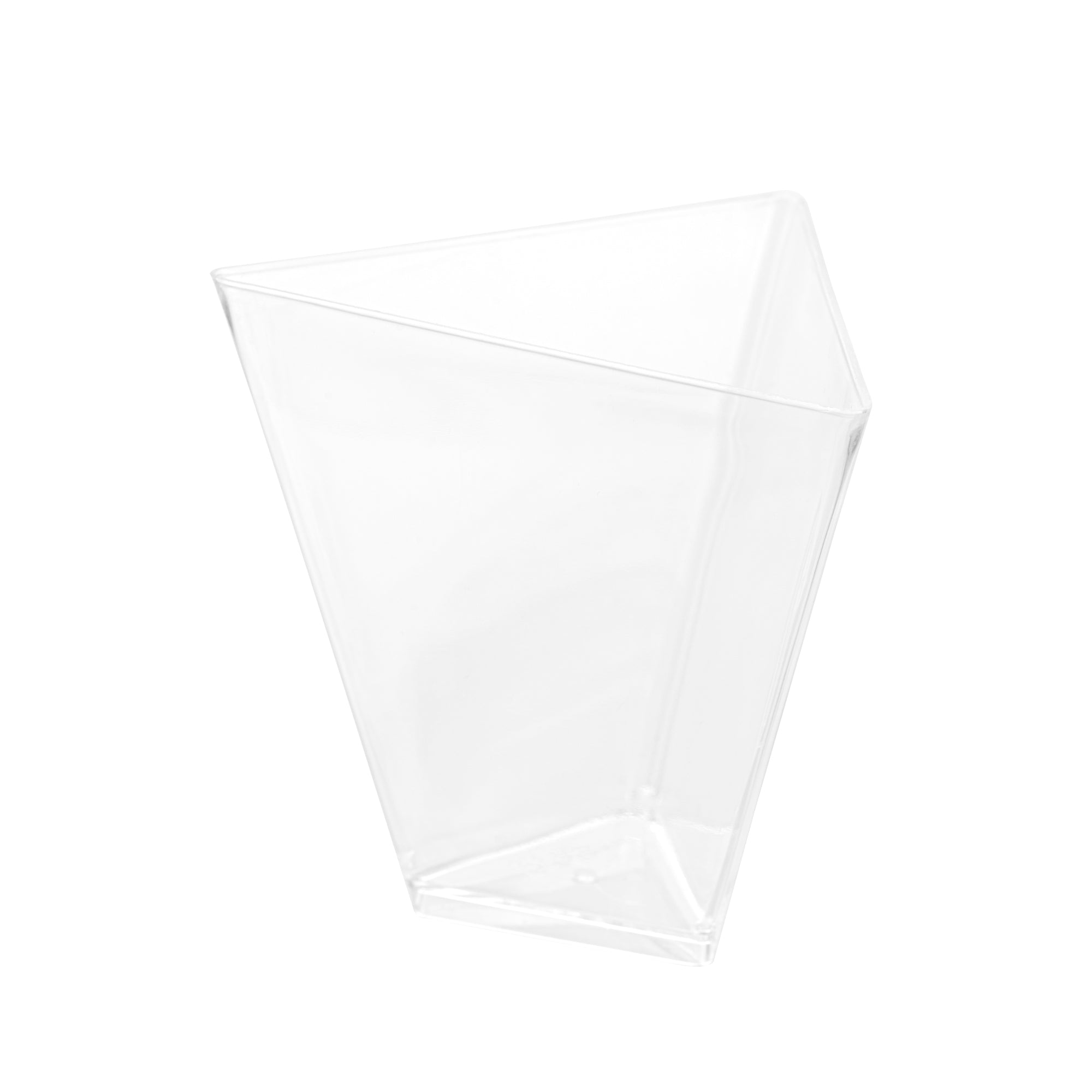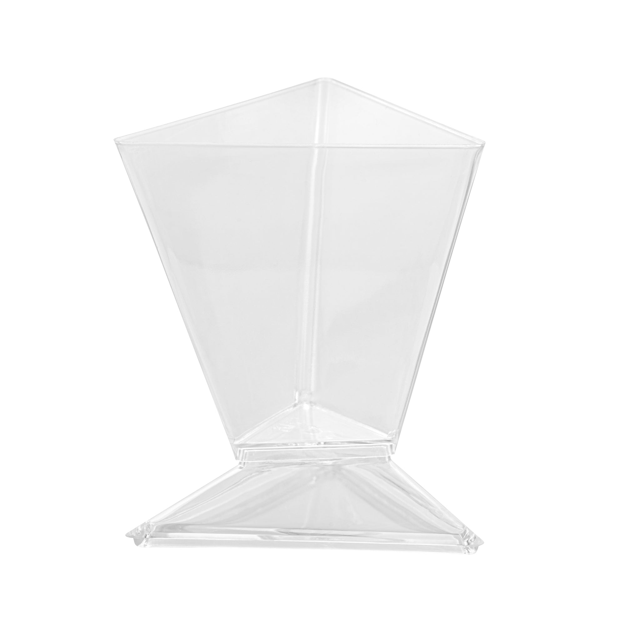 Enhance your event's appeal with elegant disposable serveware. Mini Serve Mini Dessert Cups offer an eye-catching flared triangle design that elevates culinary presentations, making them perfect for mini dessert cups at upscale gatherings. Crafted from durable plastic, these clear containers ensure that outdoor events proceed without the fear of breakage, making them ideal for dessert shooters in bustling settings. With dimensions of 2.91 inches in length, 2.52 inches in width, and 3.46 inches in height, these clear plastic dessert containers are specifically designed to accommodate cold foods while maximizing display impact. The disposable convenience of these cups streamlines post-event cleanup, allowing catering teams to focus on guest satisfaction. Invest in these versatile dessert cups to enhance your service efficiency and presentation quality. Sold in a 25 count box.