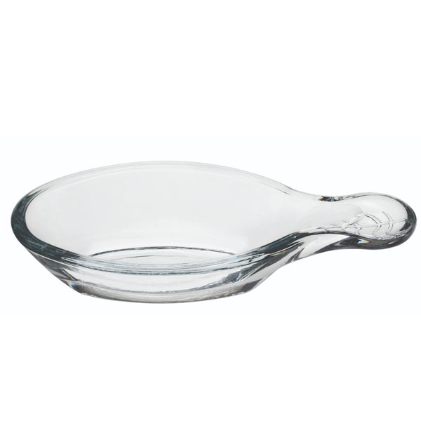 2 OZ GLASS LEAF MINI TASTING DISH - ETCHED, WITH HANDLE