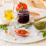 Offer customers a taste of your delicious cooking with these Mini Serve 2 ounce Glass Leaf Mini Tasting Dishes. These tasting plates are constructed from clear premium glass to showcase your savory dishes, desserts, sauces, and ingredients. The handle on these tasting dishes easily pours gravies and dressings to avoid spills and unsightly messes. For an added touch of style, these glass bowls feature an elegantly etched branch design which makes them the perfect addition to your beautiful presentations. These mini dishes also make great prep bowls to hold your spices, sugars, garnishes, and herbs. With an elegant and long-lasting design, these dishes are perfect for your restaurants, hotels, and bakeries. These glass dishes have a 2-ounce capacity and are 1 inch tall and 4.75 inches in length. Available in a 6 count box.