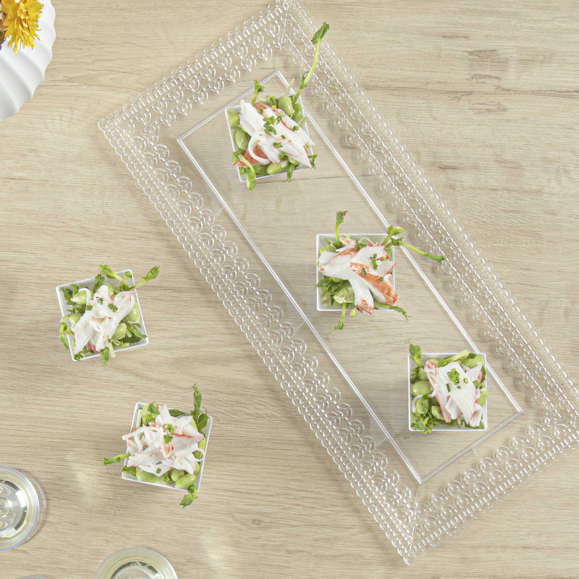 Enhance your culinary offerings with our Mini Serve 2-Ounce Square White Plastic Mini Kova Cups. Crafted from sturdy material, these mini plastic cups ensure a dependable performance on your special occasion. The smooth rim of these white plastic cups protects patrons from potential accident scratches, ensuring a pleasing eating encounter. Plus, the crisp white finish imparts a classic elegance to your presentation, making these plastic kova cups a suitable accessory for any function. Ideal for portioning desserts, appetizers, and drinks, these disposable mini cups impeccably showcase your small-portion culinary creations. The 2-ounce capacity of these plastic snack cups is the perfect size for bite-sized treats, and their single-use design ensures a quick and easy clean-up process. Pair these cups with our Mini Serve matching lids (SKU: RWP0305C) to protect the contents. Measuring 2 inches in length by 2 inches in width by 1.75 inches in height, these disposable kova cups are stackable. Sold in a 100 count box.