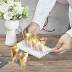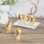 Spruce up any social gathering with the use of our Mini Serve 3-ounce Clear Plastic Mini Mezzaluna Cups. Offering a premium plastic construction, these plastic dessert cups are lightweight yet sturdy. These disposable plastic dessert cups provide an eco-friendly, recyclable solution for serving bite-sized treats. With a curved rim, these transparent appetizer containers help to stylishly showcase layered tiramisu, mini cheesecakes, or other petite sweets. Constructed of food-grade plastic, these small plastic cups securely contain liquids and sauces without leaking. The tapered sides of these recyclable cups add an elegant look while offering a comfortable grip for guests. To elegantly display decadent desserts, these heavy-duty plastic dessert cups have a crystal-clear finish. These recyclable cups for snacks and desserts can be disposed of after use. With a capacity of 3 ounces, these plastic dessert cups measure 3.25 inches in length by 2 inches in width by 1.5 inches in height. Sold in a 25 count box.