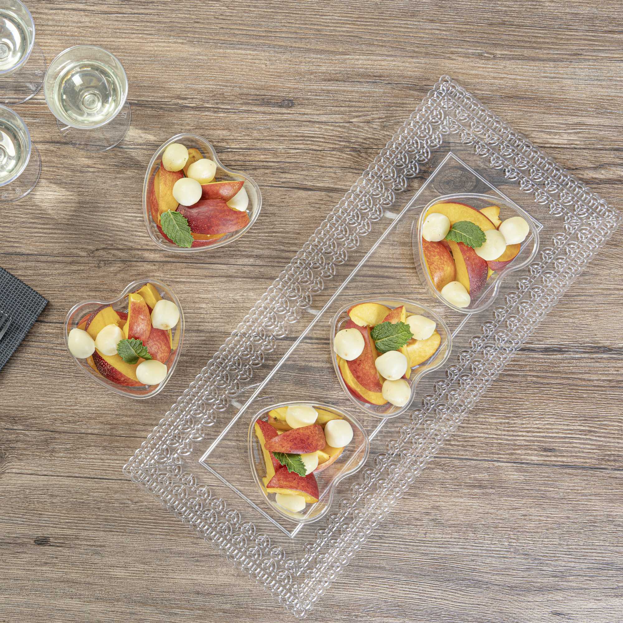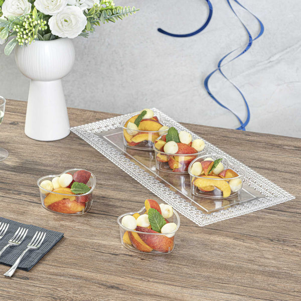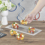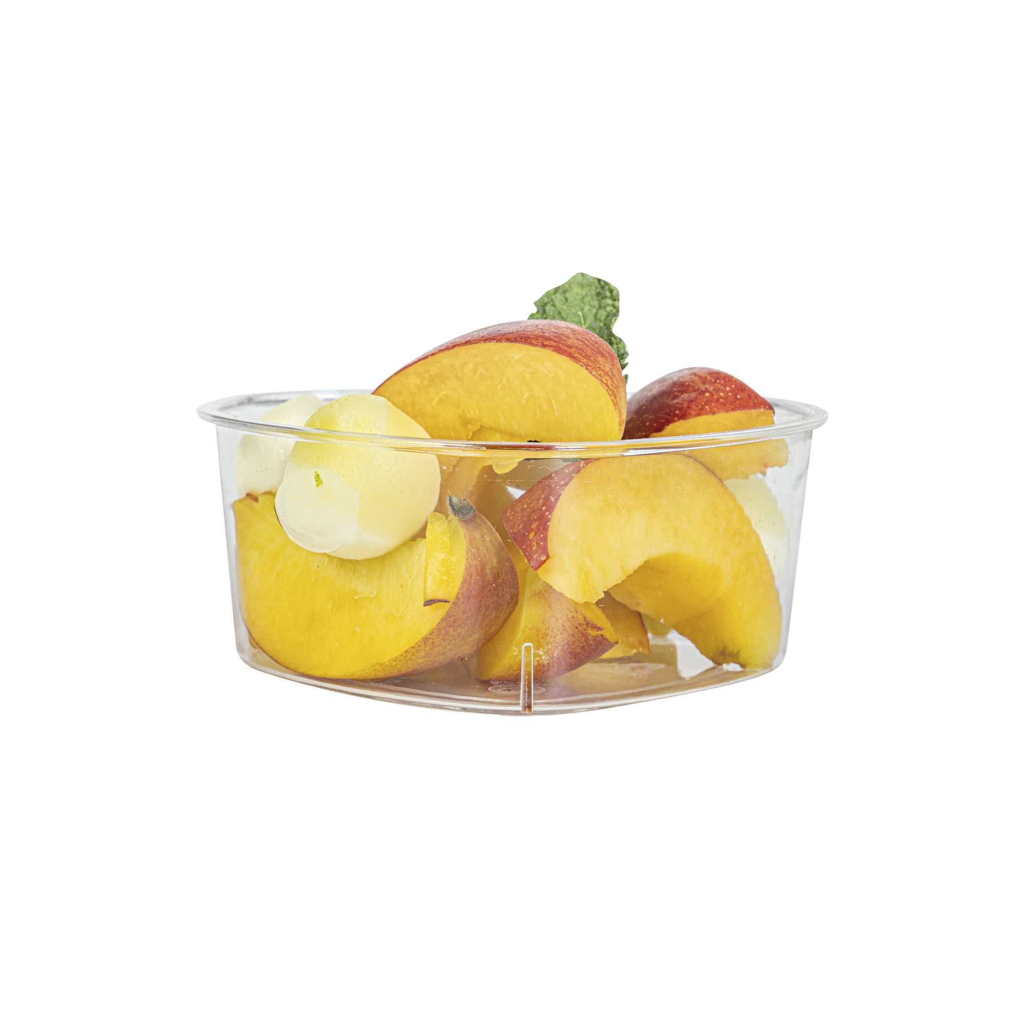 Present savory delights in an innovative way with our Mini Serve 3-ounce Round Clear Plastic Mini Slope Cups. Featuring a unique slope design, these clear dessert cups instantly upgrade appetizer and dessert presentations served at your restaurant, buffet, or catering event. Constructed from high-quality plastic, these plastic parfait cups are recyclable, providing a quick and easy post-event cleanup. Featuring a crystal clear finish, these durable dessert cups are great for serving mixed berry yogurt parfaits at your brunch buffet or individual servings of butterscotch mousse at your catered event. Containing up to 3 ounces, these mini appetizer cups measure 2 inches in diameter by 3.75 inches in height. Shipped in a 100 count box.