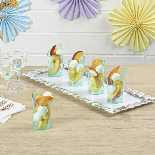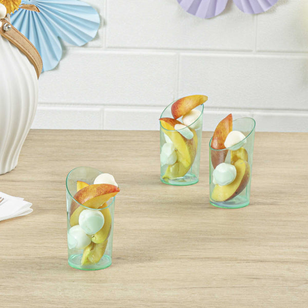 Elevate your drink presentations with our Mini Serve 3-Ounce Round Seagreen Incline Shot Glasses. Made from premium plastic, these shot glasses boast durability to endure lively festivities and lengthy evening gatherings. The distinct incline shape of these party glasses brings an immediate touch of refinement to your beverages, making them more captivating for your guests. Featuring a translucent seagreen finish, these plastic shot glasses showcase your colorful creations, amplifying the overall visual appeal. The disposable nature of these incline shot glasses simplifies post-event cleaning, ensuring you get to relish the party as much as your attendees. For added convenience in storage and transportation, these seagreen plastic shot glasses possess a stackable design, saving you space and effort. In spite of their sophisticated appearance, these disposable shot glasses are robust, with a capacity of 3 ounces for optimal servings. Measuring 2 inches in diameter by 3.25 inches in height, these recyclable plastic party glasses are perfect for various parties and occasions. Sold in a 100 count box.