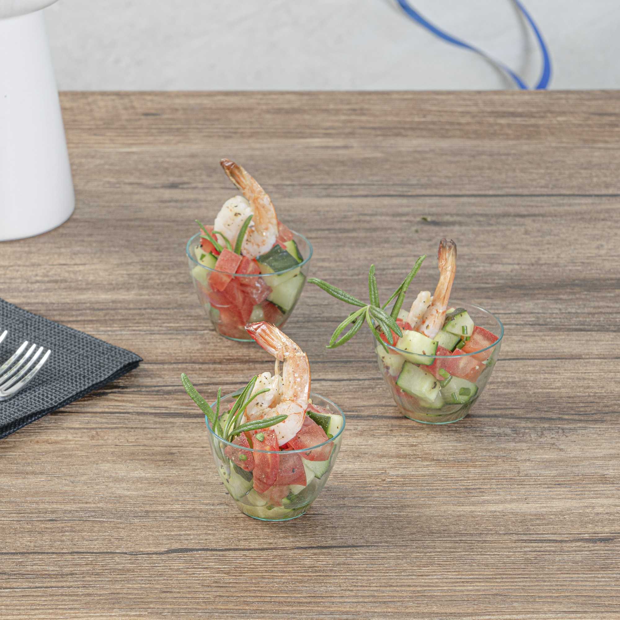 Showcase your bite-sized treats with our Mini Serve 2-ounce Round Seagreen Plastic Mini Tasting Bowls. Crafted from durable polystyrene plastic, these seagreen mini bowls boast strength and durability, perfect for serving various sampler dishes. With a round design highlighting its charm, these plastic bowls lend an air of elegance to your food presentation. Ideal for cold appetizers to dessert samples, these disposable plastic bowls are conveniently versatile. The disposable feature of these mini tasting bowls allows for quick and effortless cleanup after use. The exquisite seagreen finish of these recyclable tasting bowls brings an element of modern sophistication to your table settings. Each sample bowl can comfortably hold up to 2 ounces of food and measures 2 inches in diameter by 1.5 inches in height. Sold in a 20 count box.