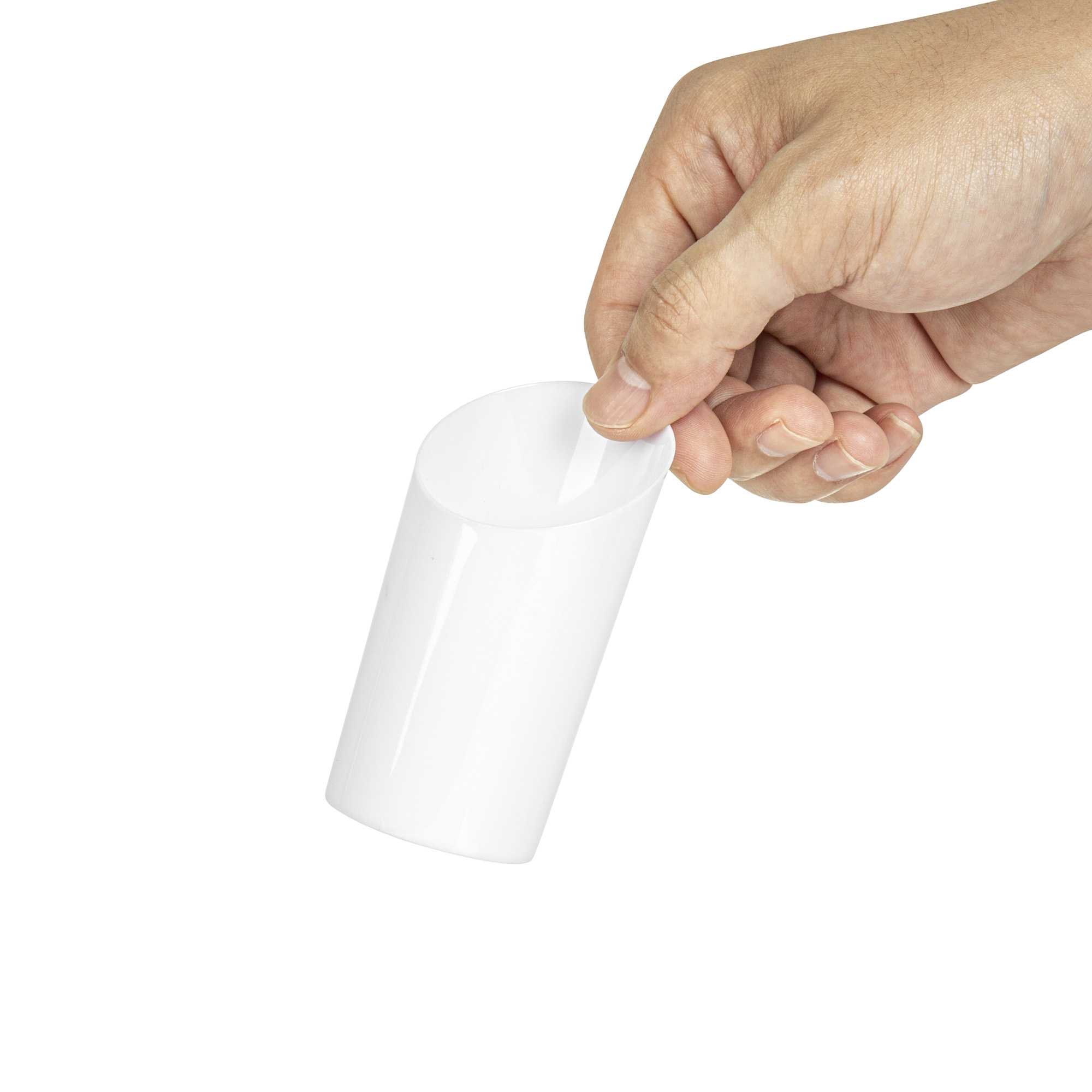 3 OZ ROUND WHITE PLASTIC INCLINE SHOT GLASS
