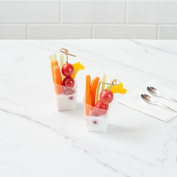 Elevate your dessert presentation with sturdy elegance. Mini Serve Mini Dessert Cups feature an elegant diamond design that enhances your culinary creations, ensuring unforgettable events with these mini dessert cups. Made from durable plastic, these cups withstand outdoor gatherings without fear of breakage, making them ideal dessert shooters for any occasion. Measuring 1.97 inches in length, 1.97 inches in width, and 3.07 inches in height, these clear dessert cups provide a chic and sophisticated way to serve cold treats. Their disposable nature streamlines cleanup, allowing your busy kitchen to maintain efficiency during peak service times. Enhance the visual appeal of your treats while enjoying hassle-free service with these versatile serving solutions. Sold in a 100 count box.