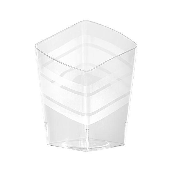 3 OZ ROUNDED DIAMOND CLEAR PLASTIC INCLINE CUP - WITH STRIPES