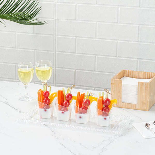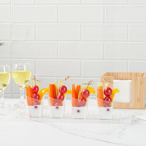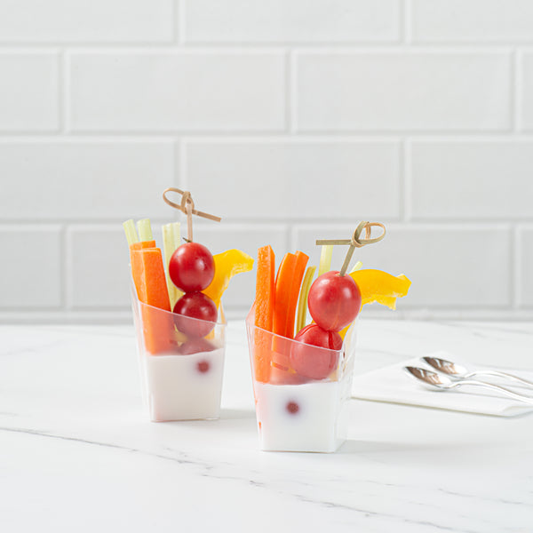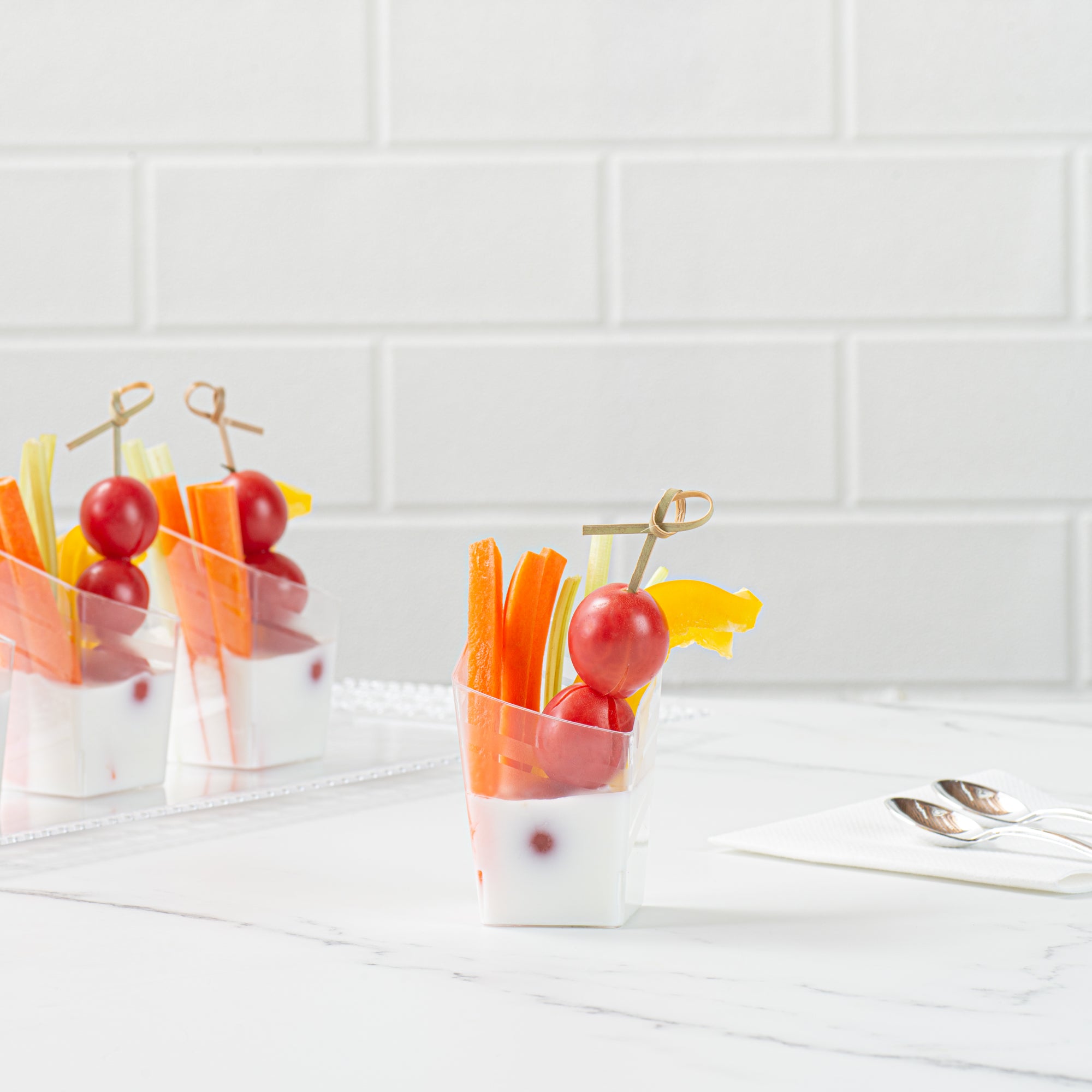 Elevate your dessert presentation with sturdy elegance. Mini Serve Mini Dessert Cups feature an elegant diamond design that enhances your culinary creations, ensuring unforgettable events with these mini dessert cups. Made from durable plastic, these cups withstand outdoor gatherings without fear of breakage, making them ideal dessert shooters for any occasion. Measuring 1.97 inches in length, 1.97 inches in width, and 3.07 inches in height, these clear dessert cups provide a chic and sophisticated way to serve cold treats. Their disposable nature streamlines cleanup, allowing your busy kitchen to maintain efficiency during peak service times. Enhance the visual appeal of your treats while enjoying hassle-free service with these versatile serving solutions. Sold in a 25 count box.