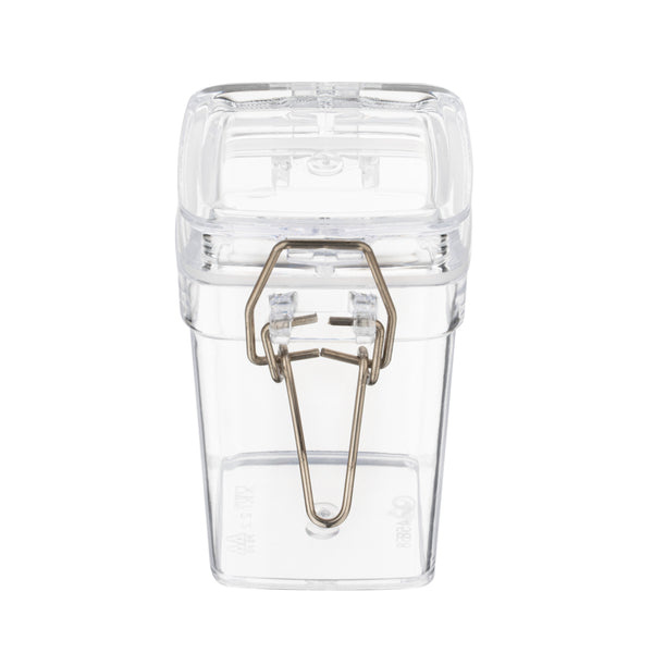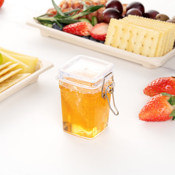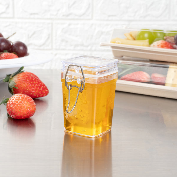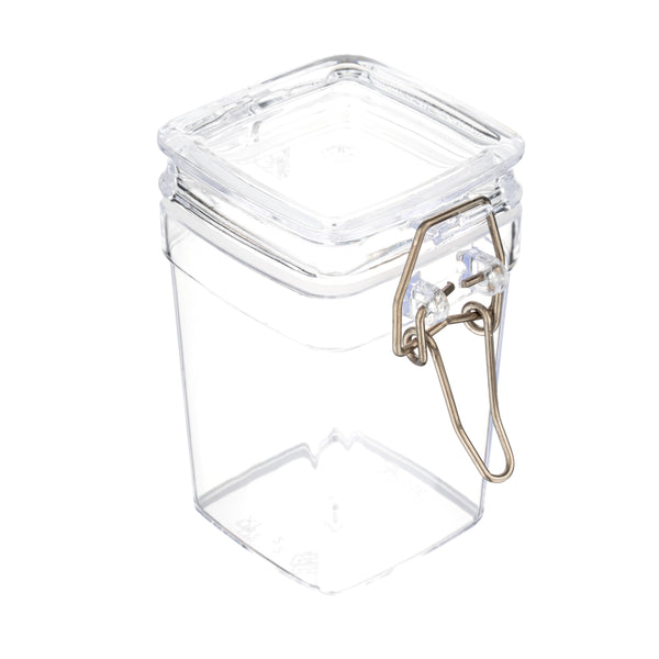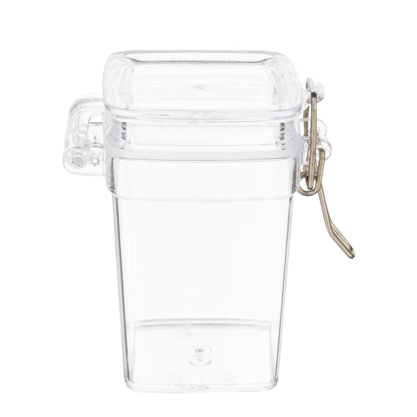 3 OZ SQUARE CLEAR PLASTIC NOSTALGIC MASON JAR - WITH CLAMP LID