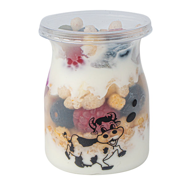 4 OZ CLEAR PLASTIC HAPPY COW YOGURT CUP - WITH LID