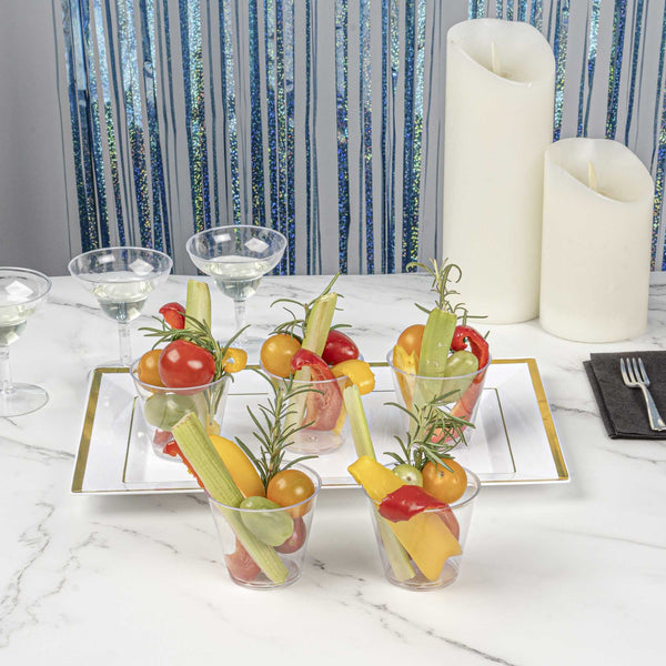 Stylishly serve individual treats with our Mini Serve 4-ounce Round Clear Plastic Arco Dessert Cups. Featuring a transparent finish, these appetizer cups showcase the bright colors and fresh ingredients in your desserts to attract the attention of your customers. Crafted from high-quality plastic, these dessert cups are leakproof and crack-resistant to expertly contain your delicious tiramisu or rice pudding. With a classic round design, these mousse cups provide a comfortable hold to prevent accidental spills at your bakery, restaurant, or catered event. These catering cups are recyclable to streamline the cleaning process after your establishment's service hours. Measuring 2.5 inches in diameter by 2.25 inches in height, these mousse cups hold up to 4 ounces of your desserts. Sold in a 20 count box.