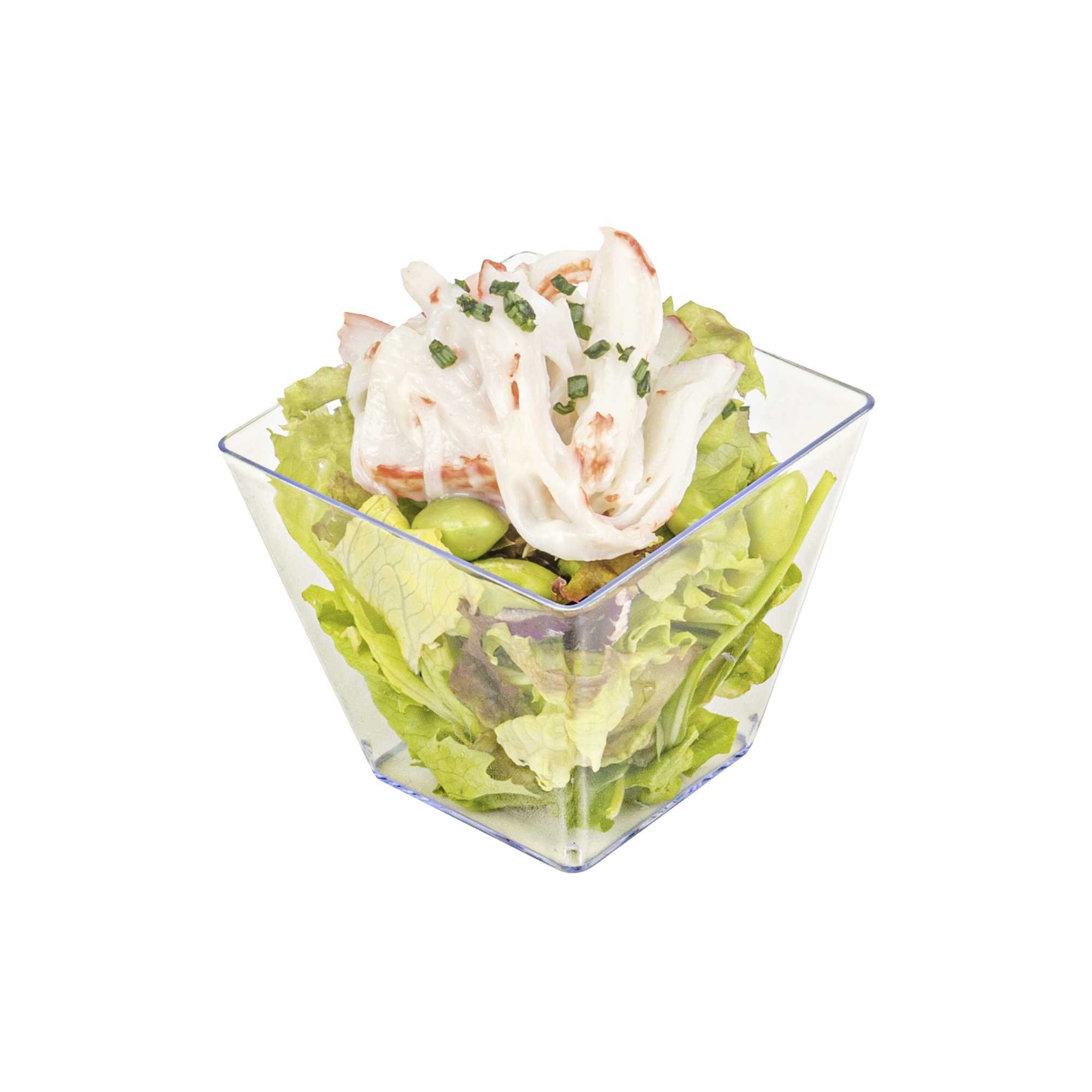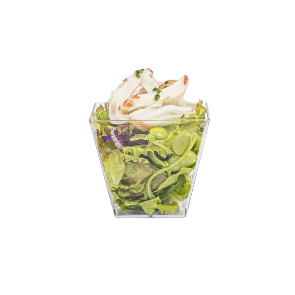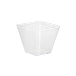 Create elegant desserts and appetizer presentations with our Mini Serve 4-ounce Square Clear Plastic Small Kova Cups. With a square design, these dessert cups add sophisticated flair to your individual ice cream and chocolate mouse servings. Featuring a crystal-clear finish, these appetizer cups display the layers of your parfaits for an appetizing look. Made from premium plastic, these parfait cups are leak-proof and crack-resistant, making them perfect for all types of puddings. These square cups are recyclable for quick and easy cleanup after your restaurant's service hours or catering event. Measuring 2.25 inches in length by 2 inches in height, these small clear plastic cups are sold in a 20 count box.