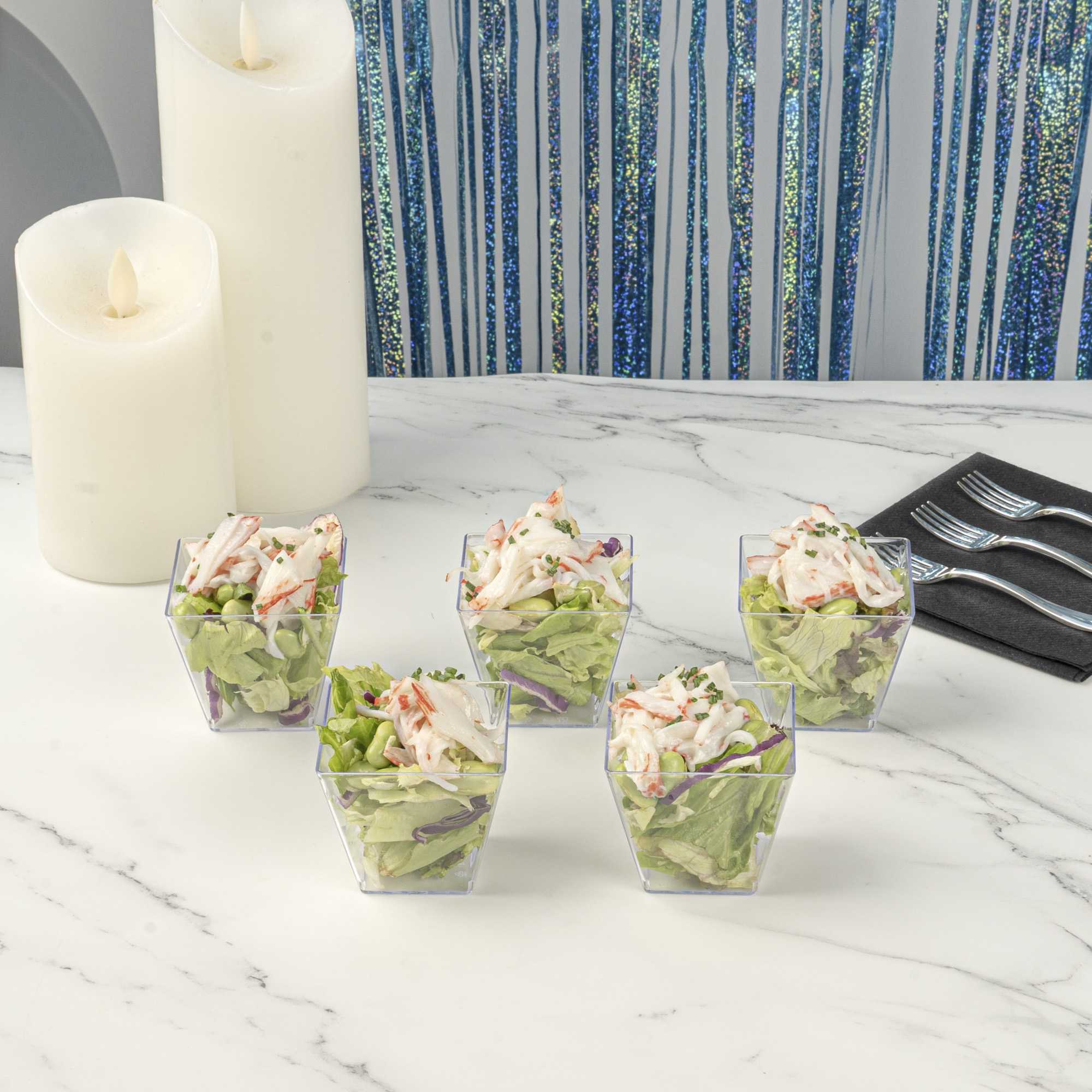 Easily prevent messy accidents! Pair these mini appetizer cups with our matching lids for a secure way to transport hors d'oeuvres from your home to parties.