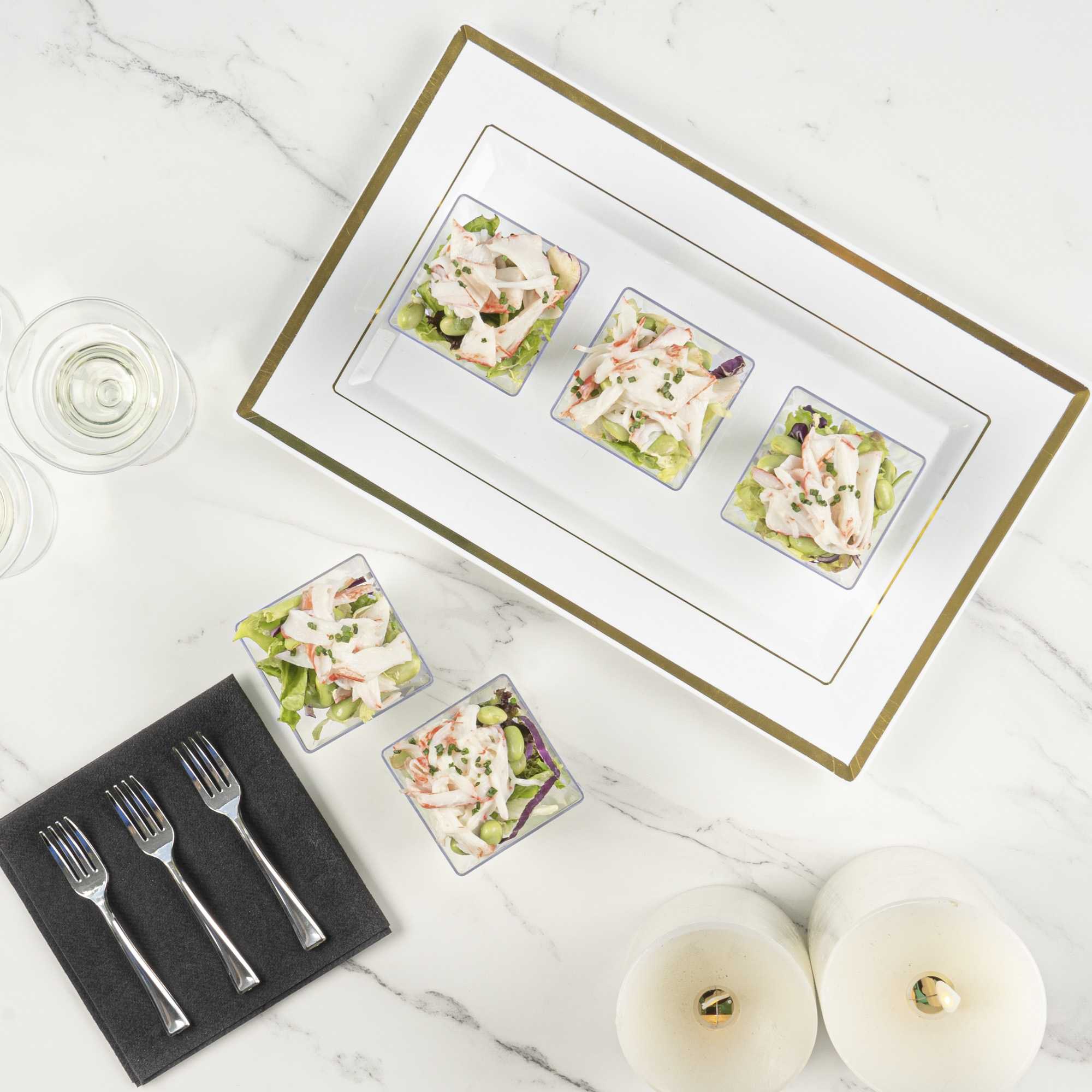 With a sturdy plastic construction, these tiny serving cups are crack-resistant to prevent condiments or drinks from leaking through. The lightweight design of these mini food cups allows you to serve a number of samplers with ease.