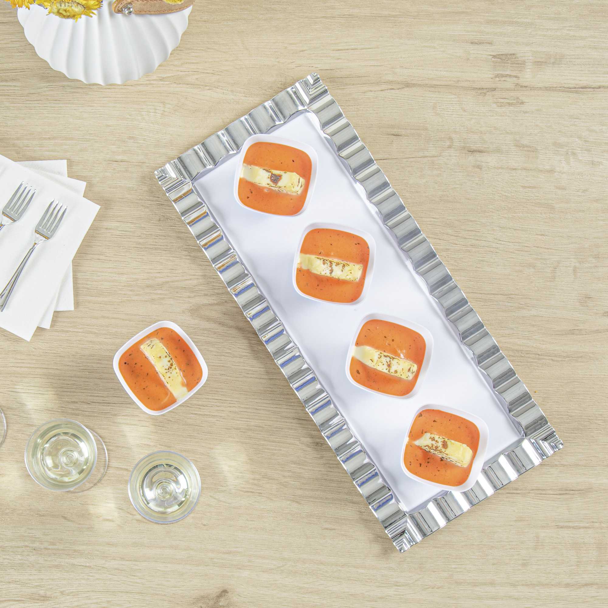 - Modern square design upgrades the look of your drinks and desserts