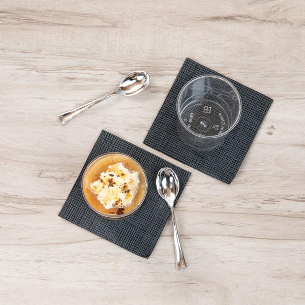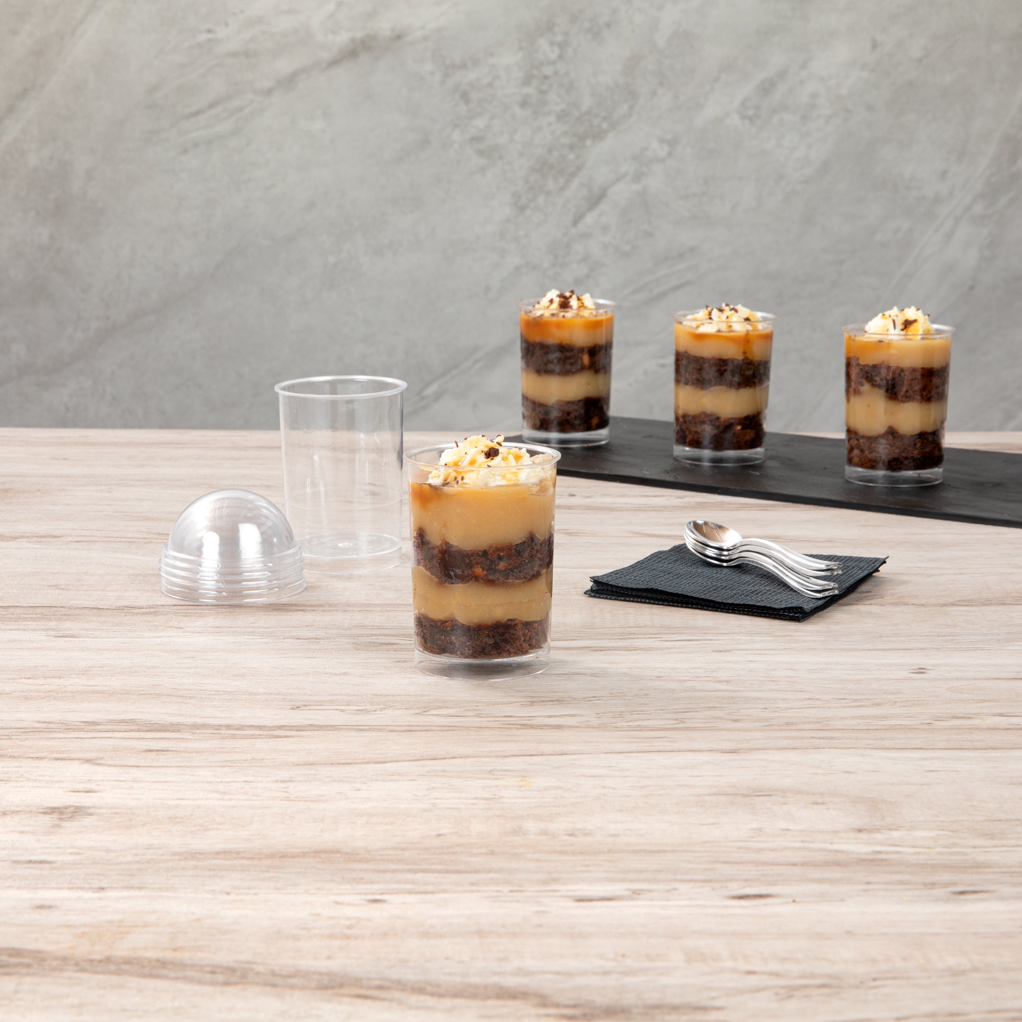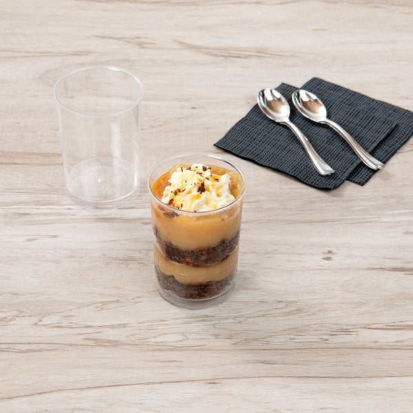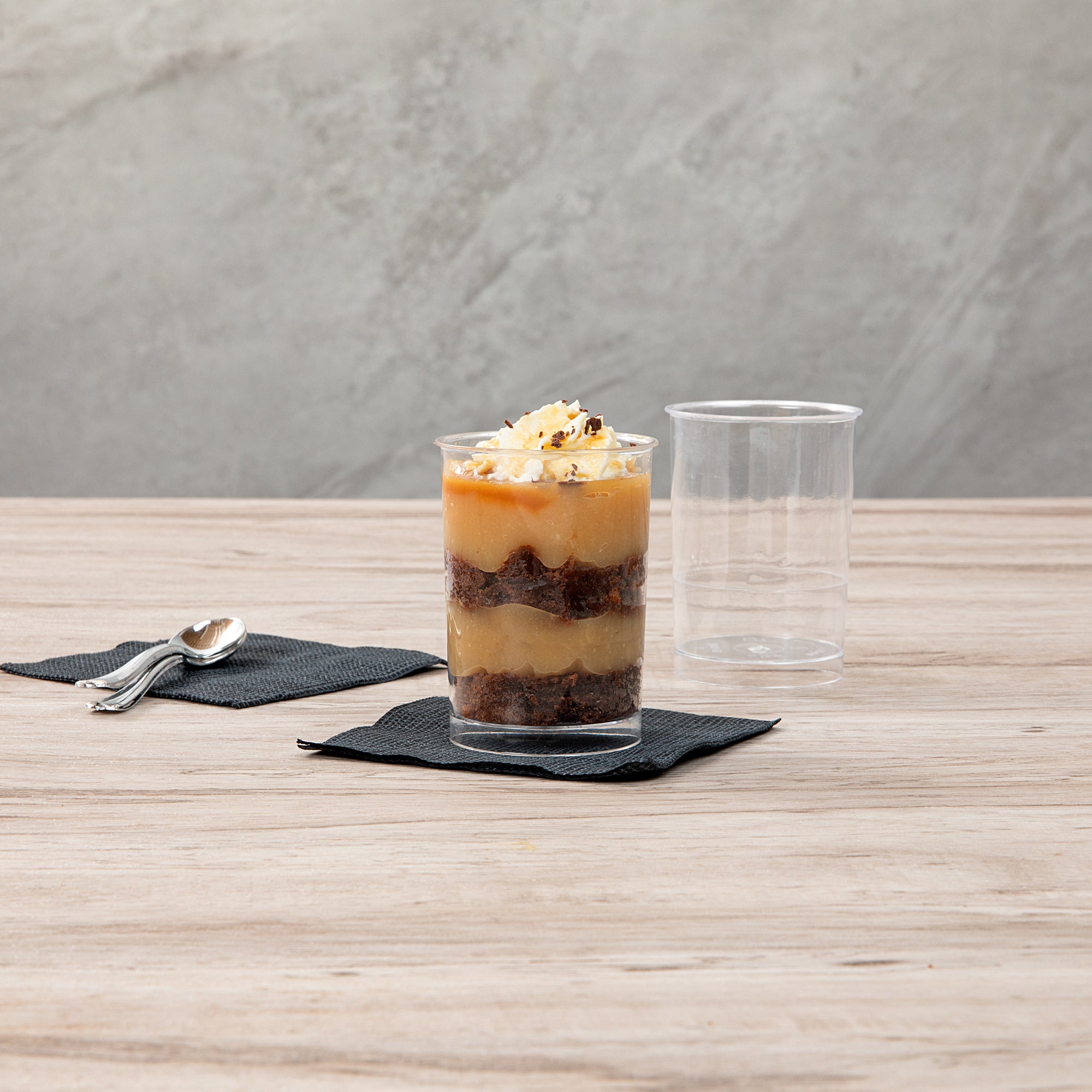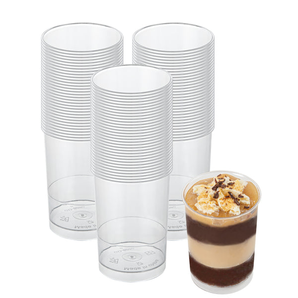 Elevate your dessert presentation with our Mini Serve 5-ounce Round Clear Plastic Dessert Cups. Crafted from durable PS plastic, these recyclable plastic dessert cups are designed to hold cold foods, making them ideal for serving ice cream and gelato. Showcasing a clear finish, these dessert cups allow guests to easily view their delicious treats while providing a sleek and modern look. The stackable design of these disposable dessert cups offers a space-saving solution for your kitchen or dessert display. For added convenience, pair these clear dessert containers with available lids (RWP1413C) to keep desserts fresh and protected. With a 5-ounce capacity and measuring 2.5 inches in diameter by 3 inches in height, these clear plastic dessert cups are perfect for serving individual portions of your delectable creations. Sold in a 25 count box. Lids are available and sold separately.