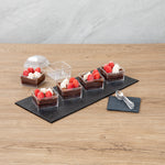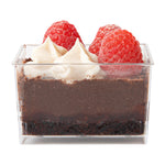 Elevate your dessert presentation with our Mini Serve 5-ounce Square Clear Plastic Dessert Cups. These recyclable plastic dessert cups are crafted from durable PS plastic, ensuring a sturdy solution for serving cold treats. Designed with a clear finish, these disposable dessert containers showcase your delicious desserts beautifully, making them an attractive option for any foodservice establishment. These clear recyclable plastic dessert cups are stackable and maximize storage space easily. Plus, these disposable plastic cups provide a convenient clean-up solution. Pair these plastic dessert containers with available lids (RWP1419C-25) for a secure and mess-free dessert experience. Measuring 2.75 inches in diameter by 1.75 inches in height, these plastic dessert glasses hold up to 5 ounces of your favorite cold creations. Sold in a 25 count box. Lids are available and sold separately.