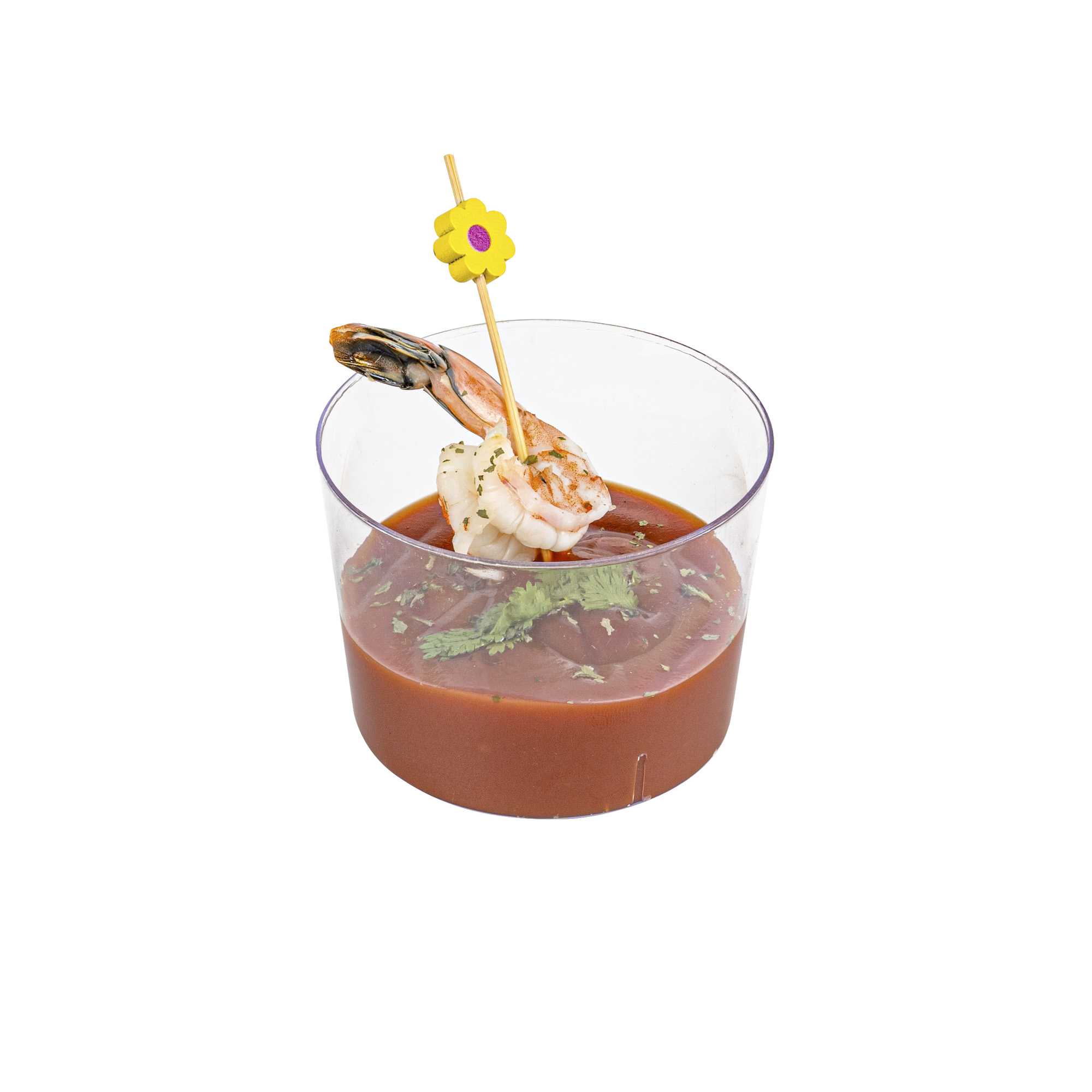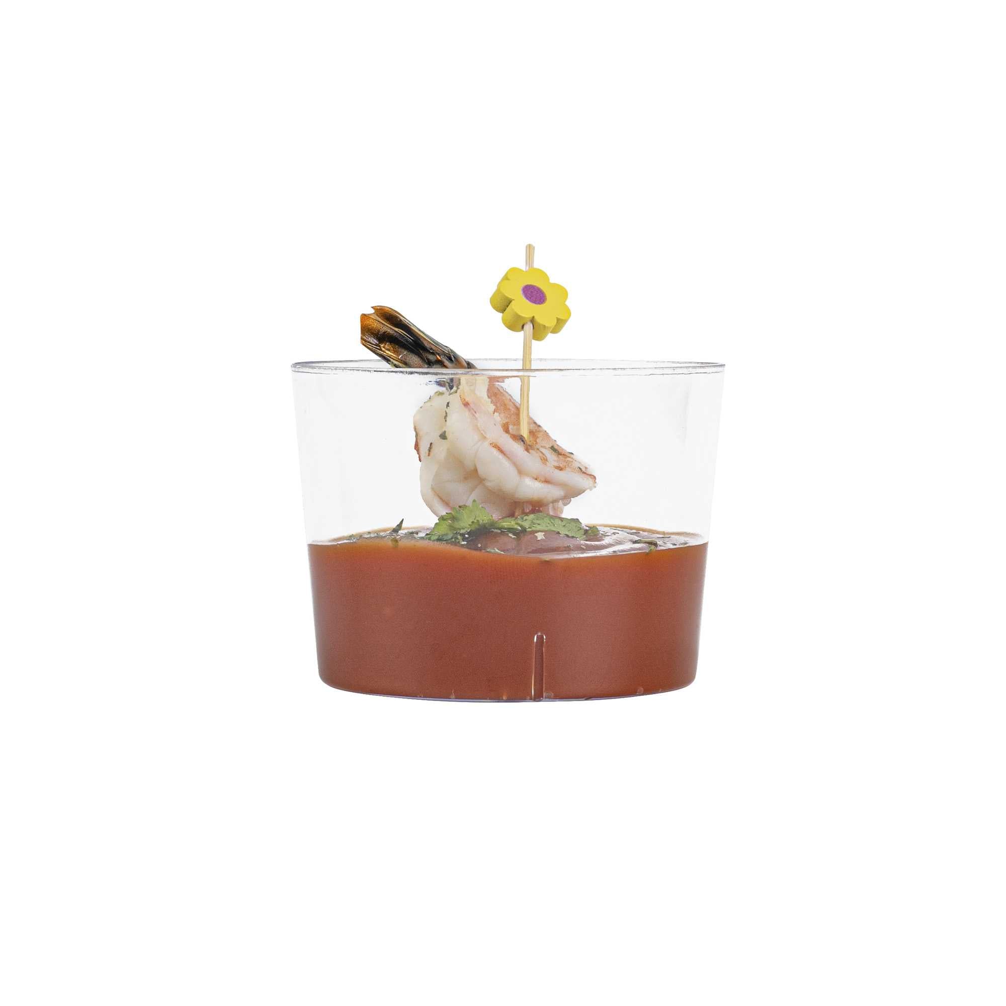 Serve up sweet puddings or mouthwatering tart treats with Mini Serve 6-ounce Round Clear Plastic Cylindro Cups. These dessert cups are robustly crafted from premium plastic. Holding up to 6 ounces, these round plastic cups are perfect for serving small portion-sized treats, yogurts, or ice creams. With a transparent finish, these parfait cups beautifully showcase your layered desserts, making them delicious and visually appealing. These clear serving cups are disposable, offering an efficient cleaning solution. Measuring 2.25 inches in diameter by 3 inches in height, these disposable tasting cups have a capacity of 6 ounces. Sold in a 100 count box.