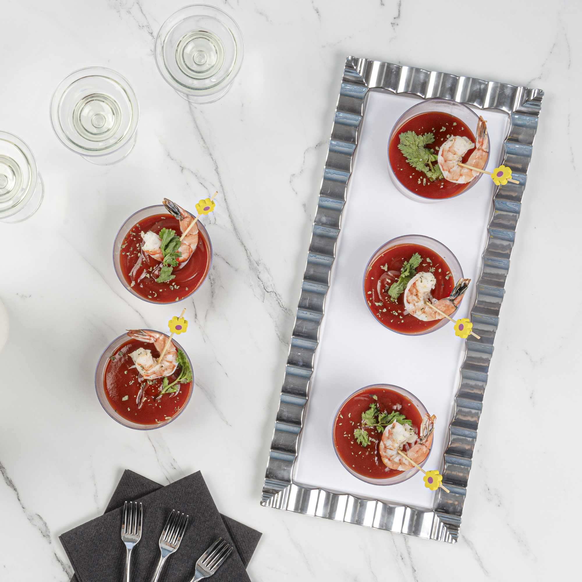 - Crystal clear finish beautifully showcases appetizers and desserts