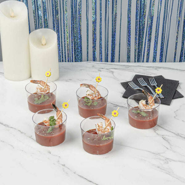 Serve up sweet puddings or mouthwatering tart treats with Mini Serve 6-ounce Round Clear Plastic Cylindro Cups. These dessert cups are robustly crafted from premium plastic. Holding up to 6 ounces, these round plastic cups are perfect for serving small portion-sized treats, yogurts, or ice creams. With a transparent finish, these parfait cups beautifully showcase your layered desserts, making them delicious and visually appealing. These clear serving cups are disposable, offering an efficient cleaning solution. Measuring 2.25 inches in diameter by 3 inches in height, these disposable tasting cups have a capacity of 6 ounces. Sold in a 20 count box.
