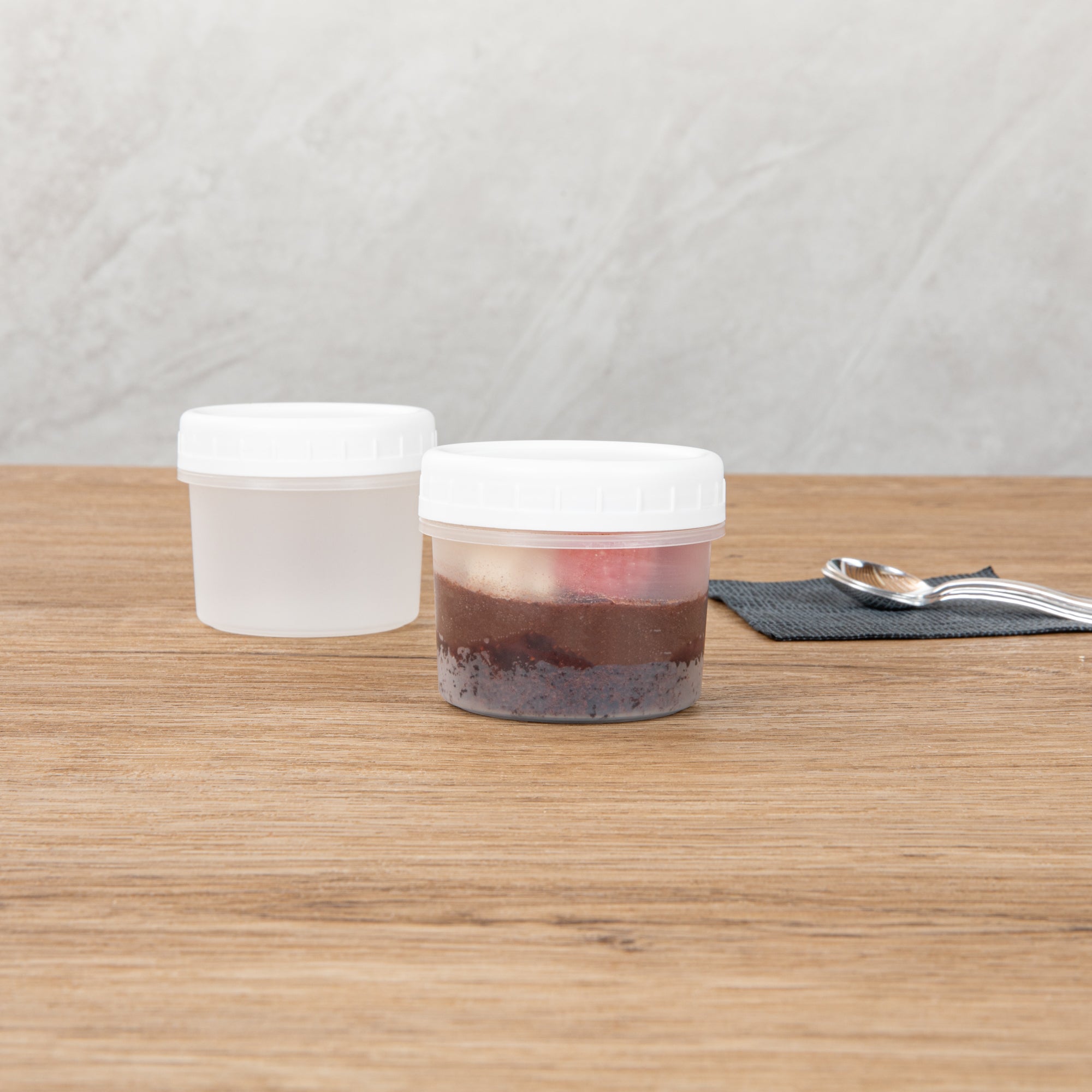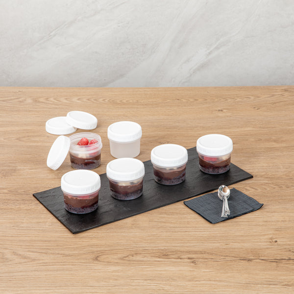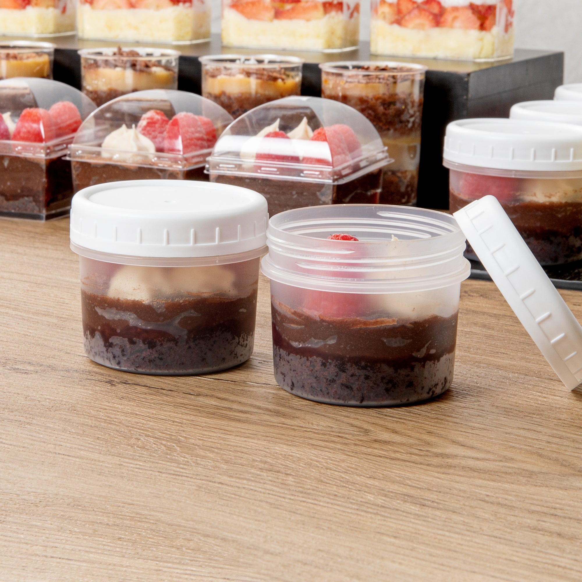 Showcase your desserts elegantly with our Mini Serve 6.76-ounce Round Clear Plastic Dessert Cups. Crafted from BPA-free PP plastic, these recyclable plastic dessert cups are built to withstand hot and cold foods without cracking or breaking. These clear dessert cups are perfect for showcasing your delicious desserts, making them irresistible to your patrons. For your convenience, these disposable dessert cups come with matching lids, ensuring your delicious treats are protected in transit. These microwavable clear recyclable plastic dessert cups allow you to serve warm desserts with ease, making them a versatile addition to your foodservice operation. Easily stackable, these plastic dessert glasses save valuable storage space in your kitchen. With a capacity of 6.76 ounces, these dessert cups with lids are perfect for serving individual portions of your signature desserts. Measuring 2.75 inches in diameter by 2.5 inches in height, these clear dessert cups with lids are compact yet spacious enough to hold a generous serving of your delicious treats. Sold in a 25 count box.