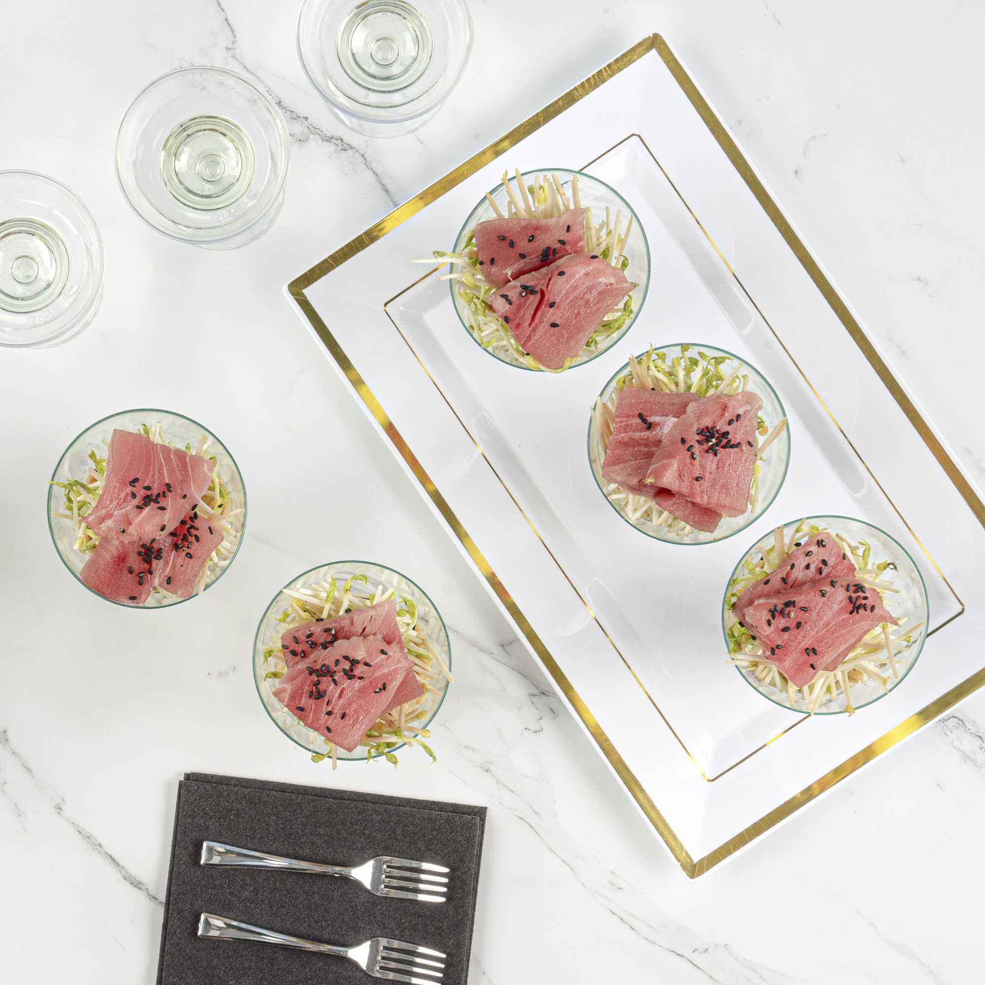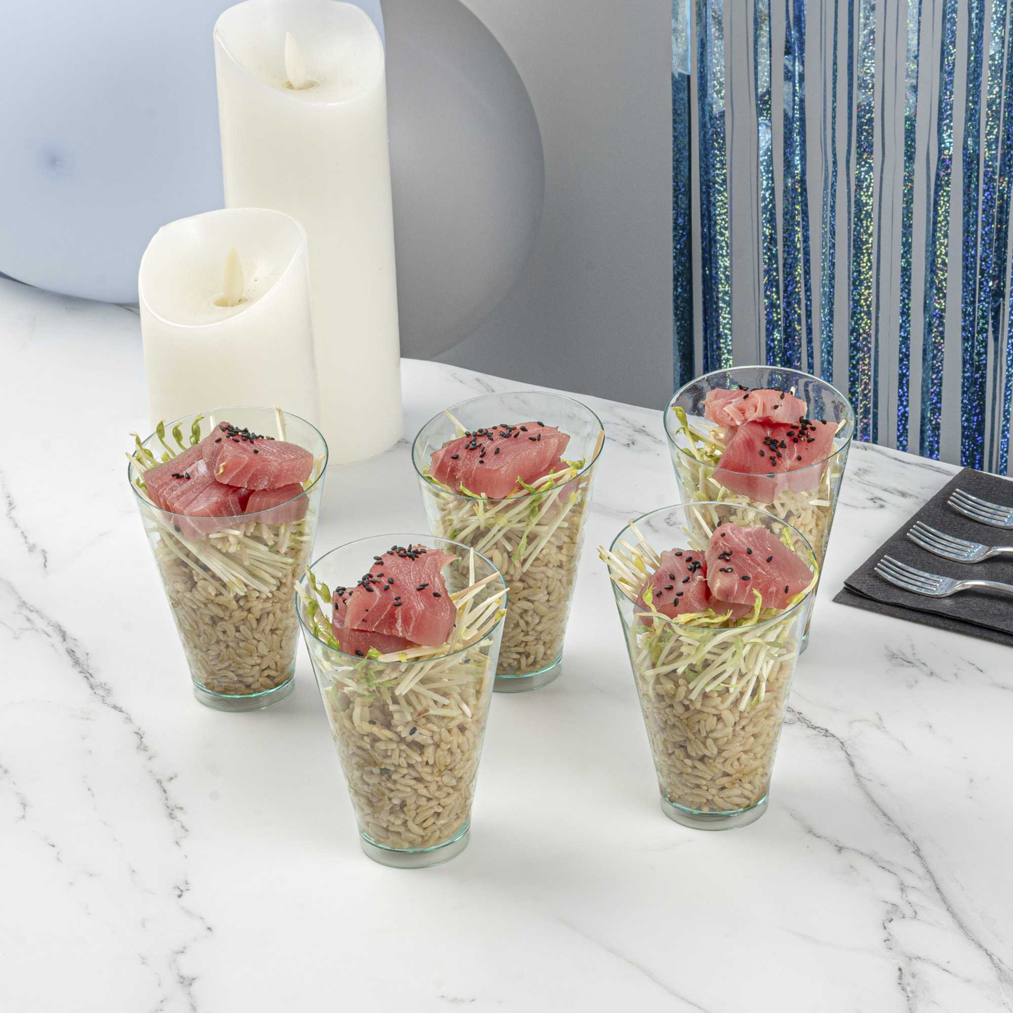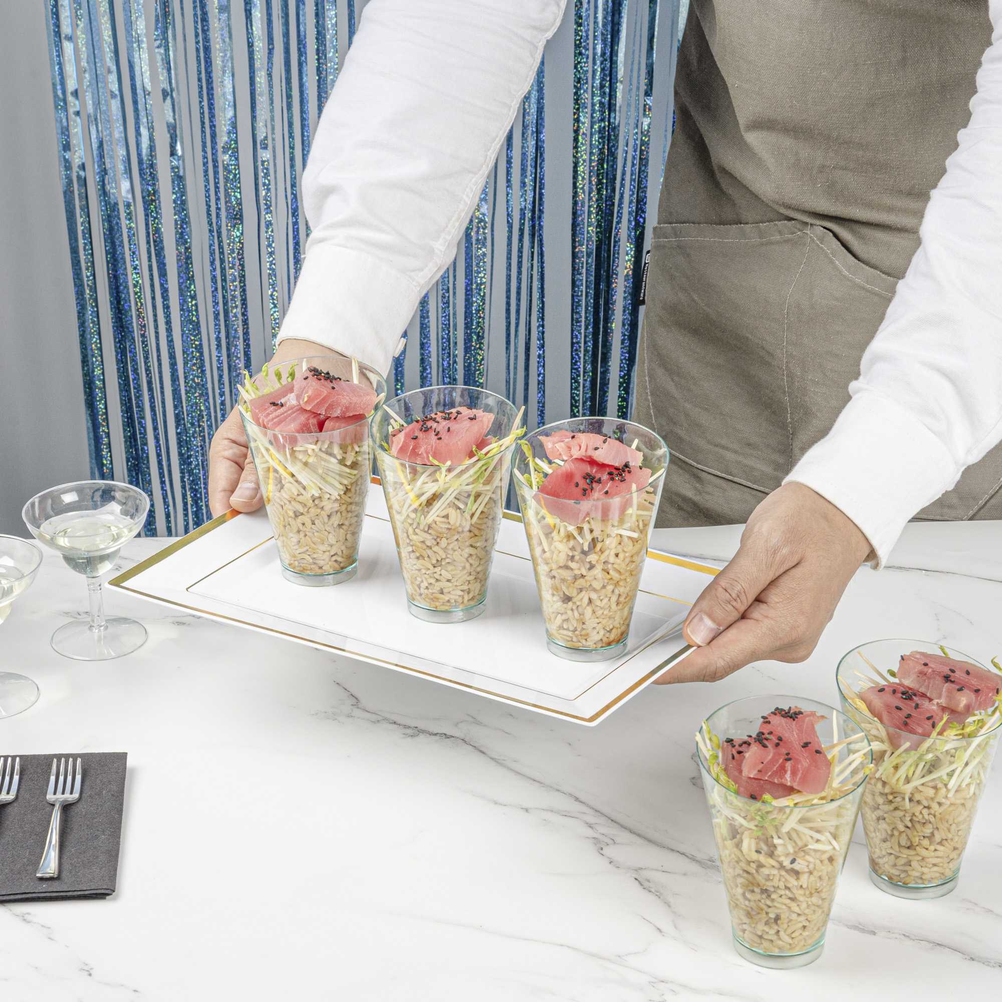 • Inclined edge beautifully showcases your desserts or cocktail shots with sophistication