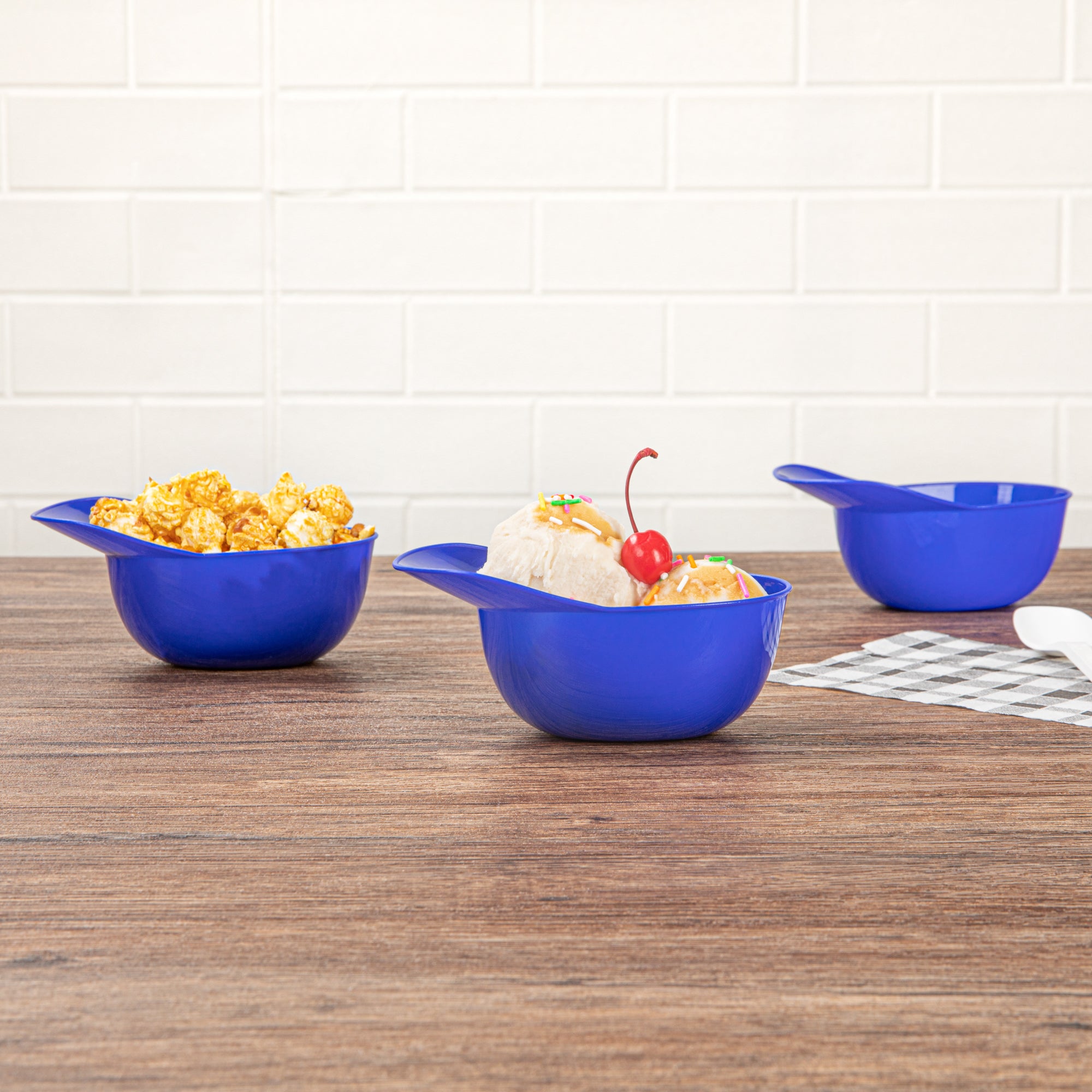 These durable plastic bowls are sold in a vairety of finishes and adds a pop of color to your tablescapes. Serve a wide variety of snacks with flair!