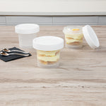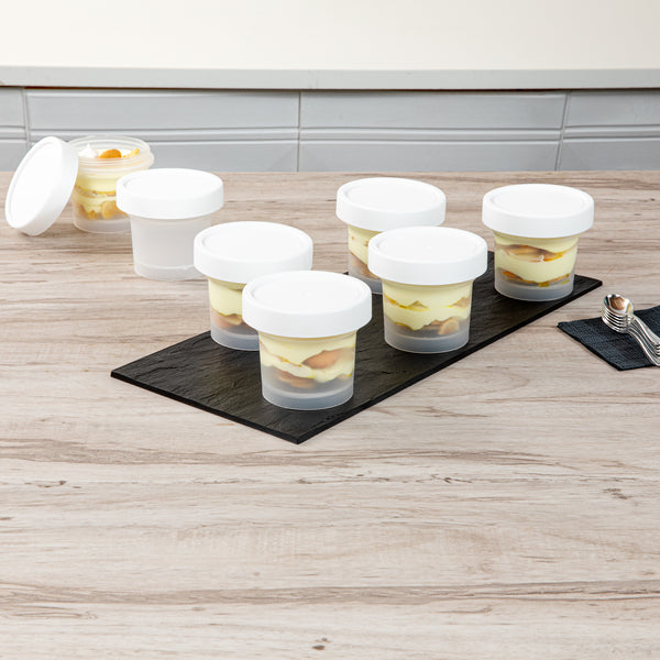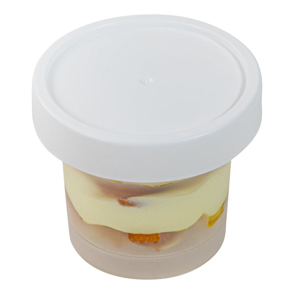 Elevate your dessert presentation with our Mini Serve 7-ounce Round Clear Plastic Dessert Cups. These clear dessert cups with lids are perfect for showcasing your delectable treats while keeping them fresh and protected. Crafted from BPA-free PP plastic, these disposable dessert cups are suitable for hot and cold foods, offering versatility in your dessert menu options. For added convenience, these plastic dessert glasses are microwavable, allowing you to serve your creations at the perfect temperature. The stackable feature of these recyclable plastic dessert cups saves valuable storage space in your kitchen or catering facility. These dessert cups with lids have a clear finish, allowing customers to view and select their preferred treat easily. With a 7.6-ounce capacity and measuring 3.5 inches in diameter by 3 inches in height, these disposable recyclable plastic dessert cups provide ample room for your delectable creations. Sold in a 100 count box.