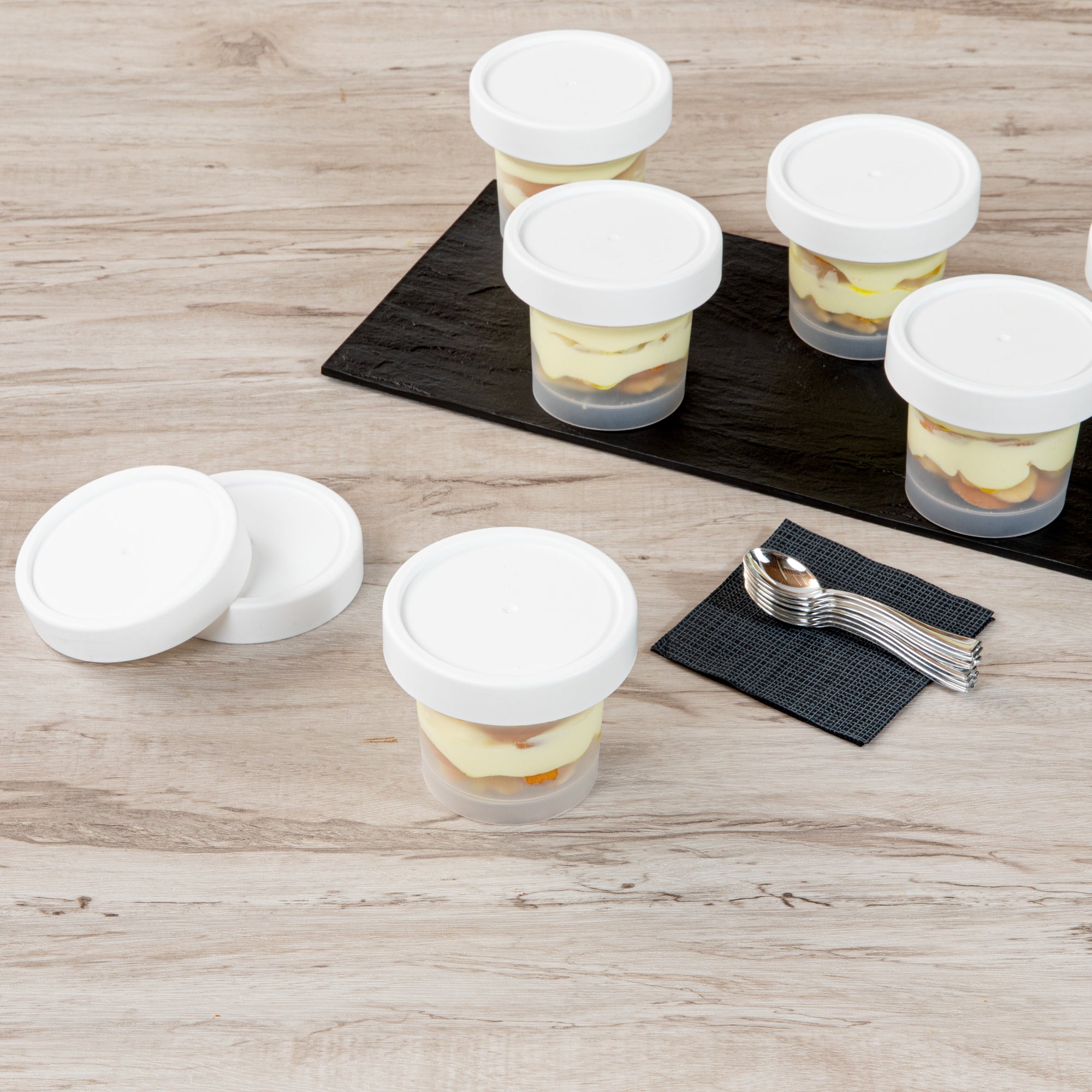 - Matching lids provide a hassle-free option for takeaway treats or pre-portioned servings