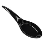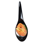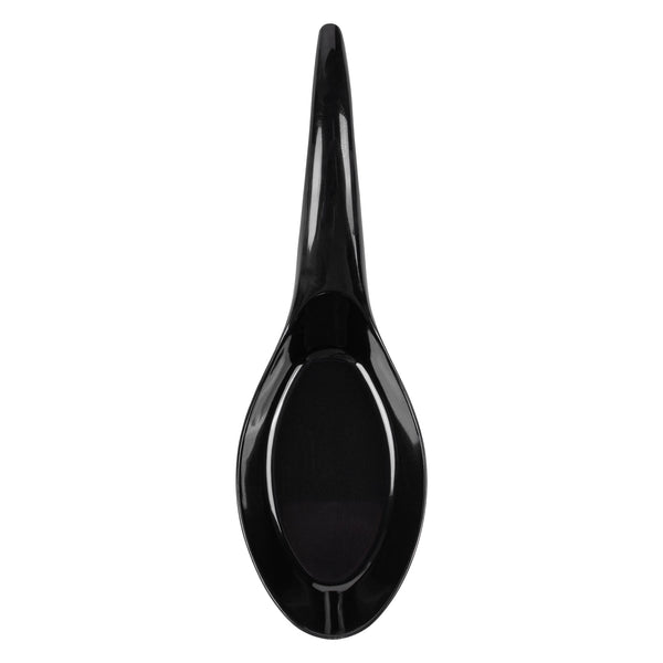 Make a splash at your next catered event with our Mini Serve Black Plastic Wave Spoons. Combining a polished black finish with a unique curved handle, these appetizer spoons are designed to have a striking effect on any occasion. The elongated basin of these wave spoons provides plenty of room for you to plate your bite-sized appetizers and miniature desserts, while their flat base enables sophisticated and seamless service. Constructed from premium plastic, these amuse bouche spoons are conveniently disposable and ensure quick and easy cleanup. Each of these plastic appetizer spoons measures 5 inches in length by 1.5 inches in width. Sold in a 100 count box.
