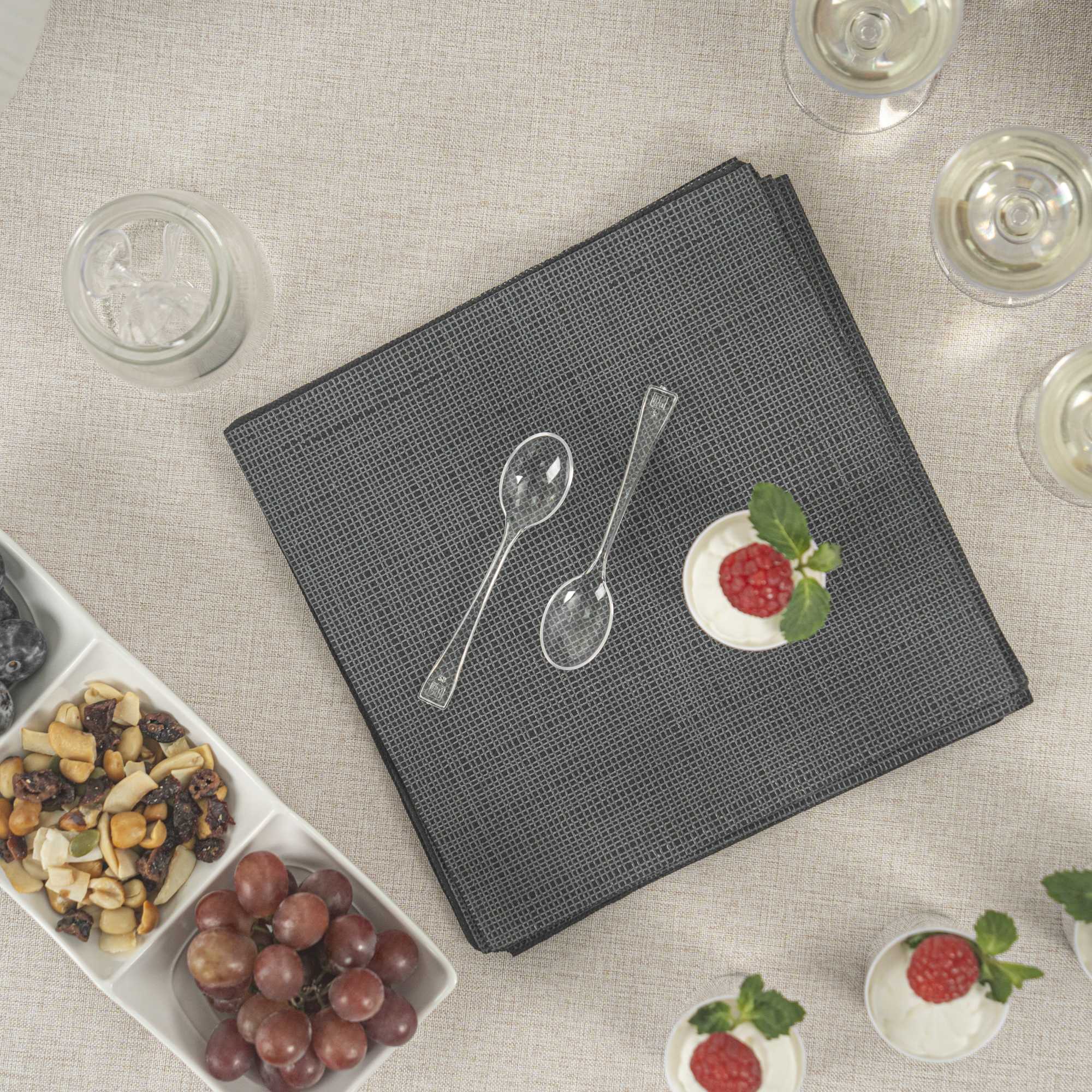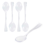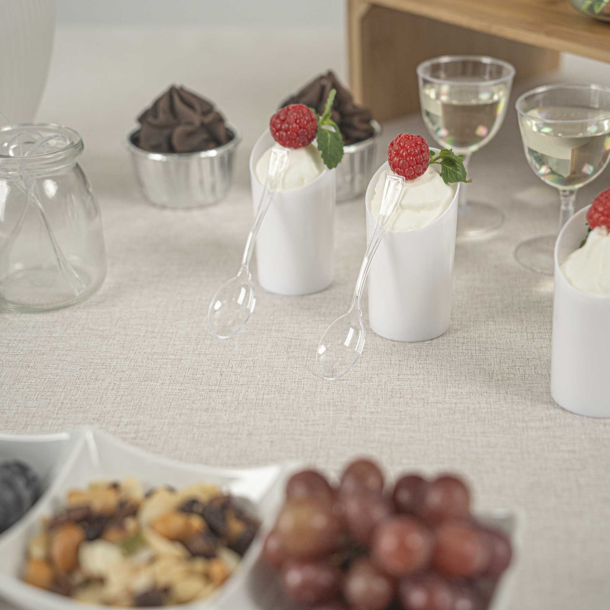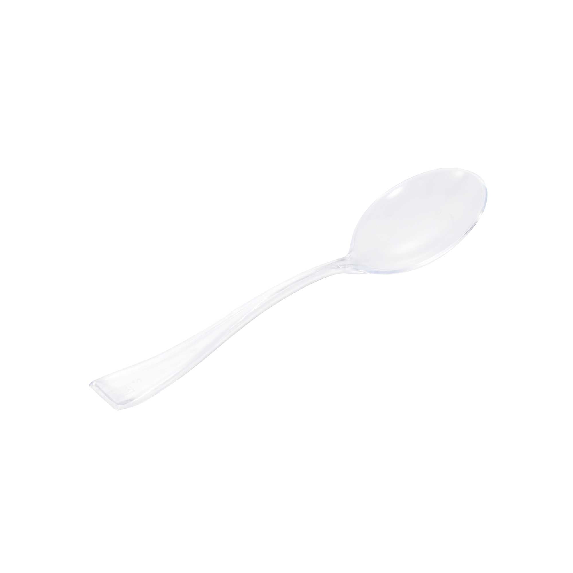 Bring a touch of elegance with our Mini Serve Clear Plastic Mini Spoons. Crafted from premium plastic, these mini-plastic spoons are durable and strong enough to stand up to your delicious selection of mini-catered foods. These plastic spoons for dessert are recyclable, reducing your carbon footprint. Constructed with high-quality plastic, these durable plastic spoons can be used with cold foods. The clear finish of these dessert spoons lets you conveniently coordinate them with any venue and tablescape. Each clear plastic spoon measures 4 inches in length. Sold in a 100 count box.