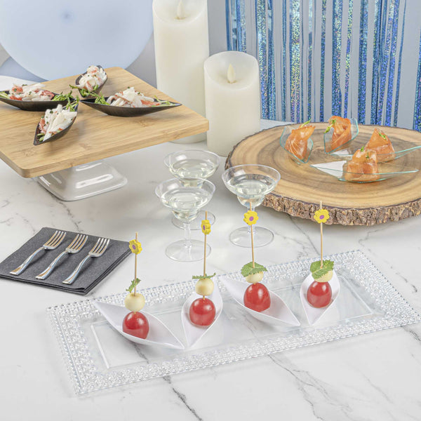 - Canoe shape adds a stylish touch to appetizers and desserts