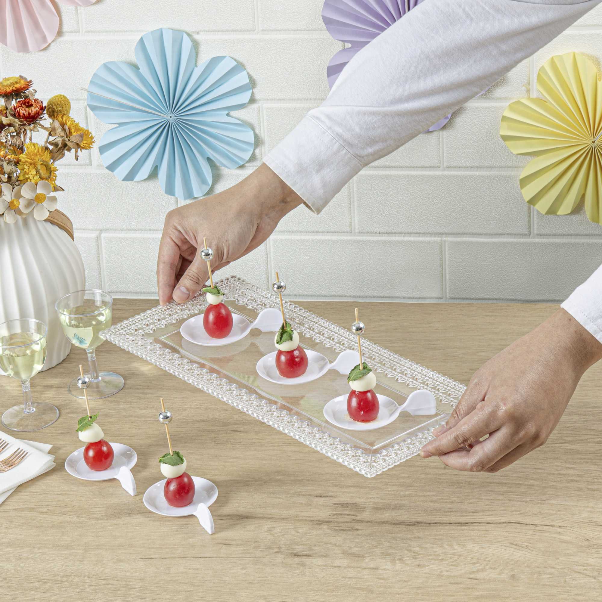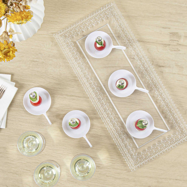 Serve individual food samples in a unique way with our Mini Serve Fish White Plastic Tasting Plates. These premium disposable plastic plates are ideal for stylishly serving small portions at any event. The recyclable material of these sauce dishes allows for an eco-friendly solution to single-use plating. The fish-shaped design with a handle adds visual interest to complement any tablescape while providing a comfortable grip. These modern plates for food sampling have a white finish, adding a perfect neutral backdrop to showcase beautifully presented food samples. The lightweight yet durable plastic construction of these disposable mini food plates enables easy transport and handling. Measuring 3.75 inches in length by 2.5 inches in width, these miniature appetizer plates contain the perfect amount of food in each sample. Sold in a 100 count box.