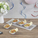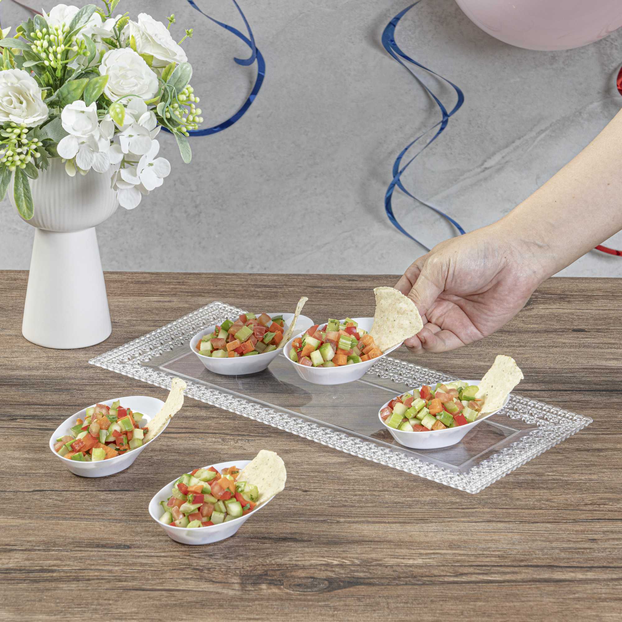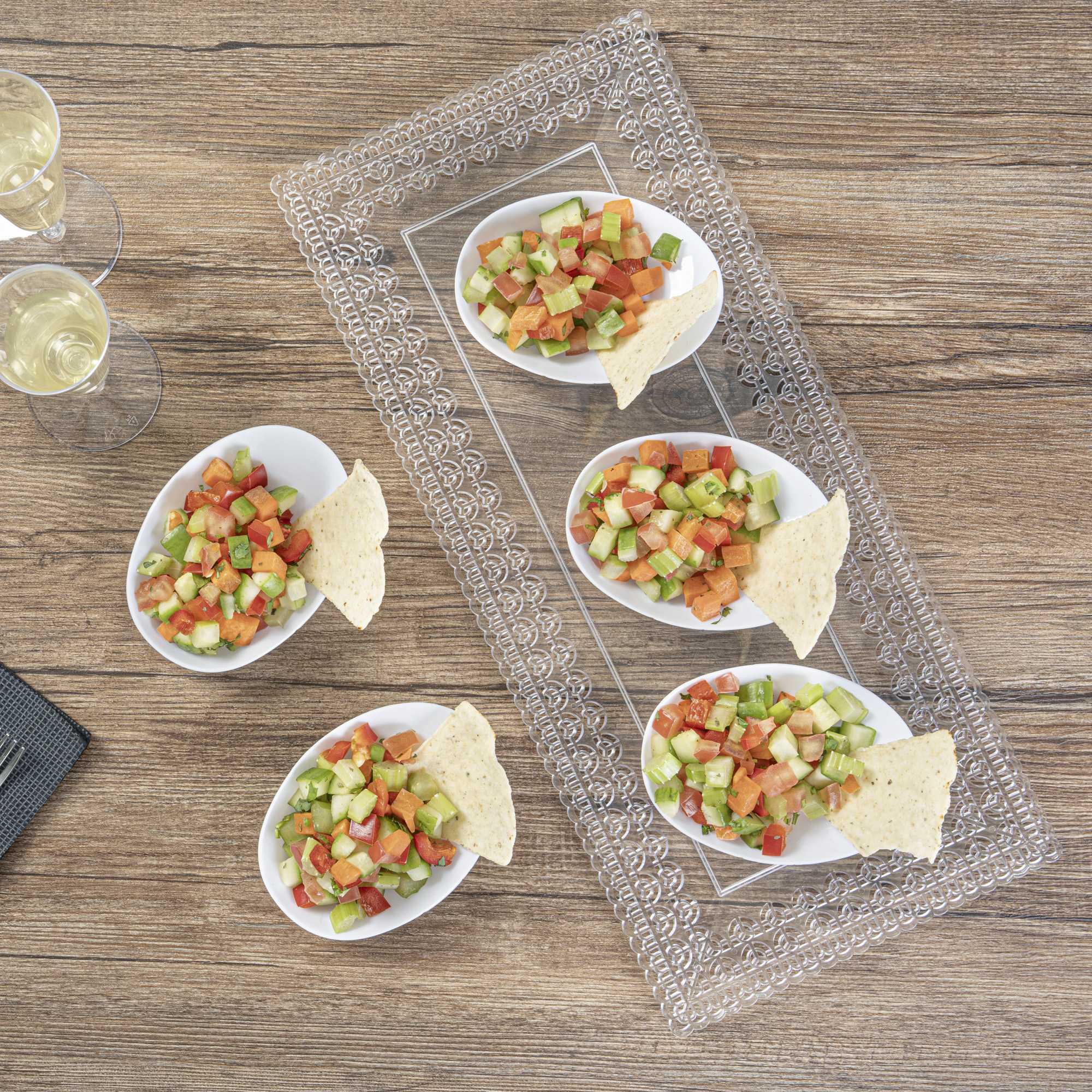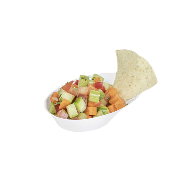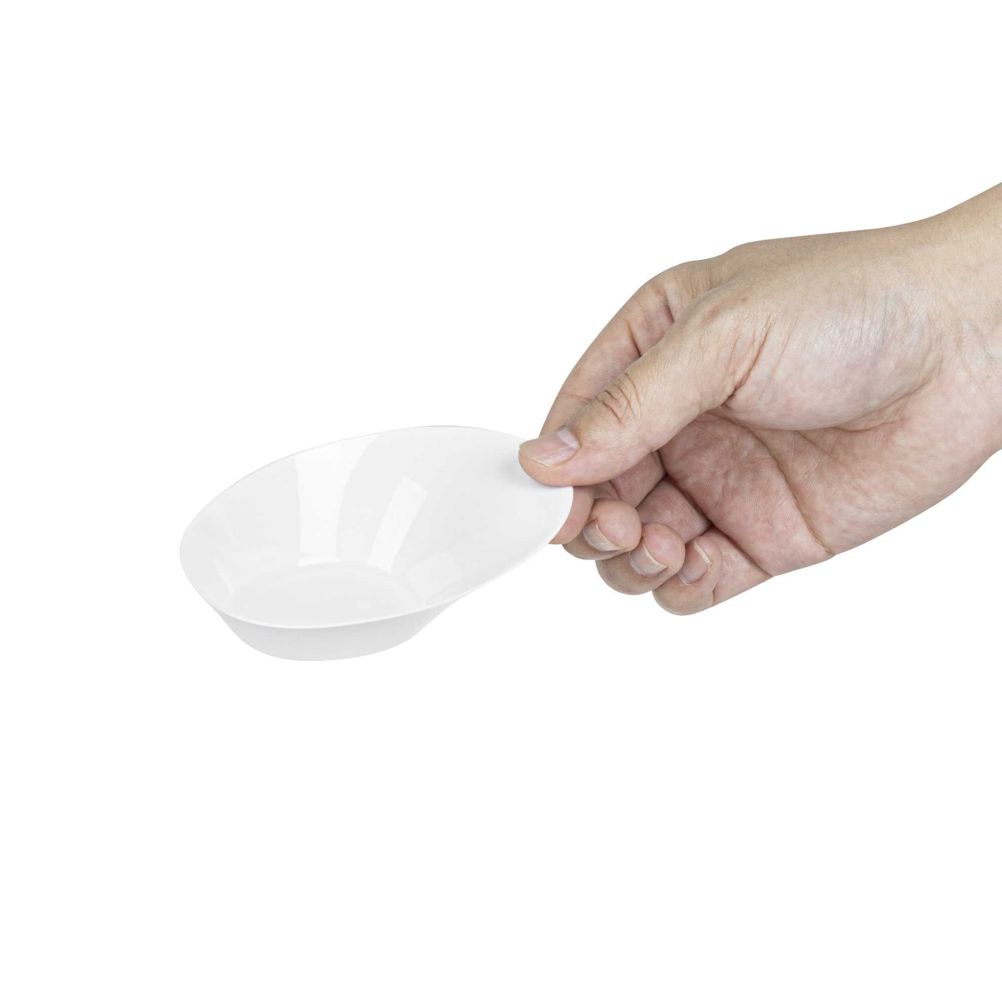 Indulge your guests with our Mini Serve Oval White Plastic Ellipse Dishes. Beautifully crafted from premium plastic, these tasting bowls are robust and durable. With a slightly tilted ellipse form, these white plastic bowls bestow an elegant and contemporary polish to your appetizers and tasting portions. The pristine white finish of these plastic dishes underscores the striking contrasts and textures of your gastronomic delights, imparting a layer of sophistication and modernity to your dinnerware. These disposable plastic bowls facilitate a hassle-free cleanup method after major social events. Each serving dish measures 4 inches in length by 3 inches in width by 1.50 inches in height. Shipped in a 50 count box.