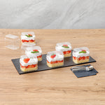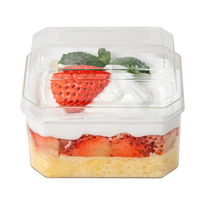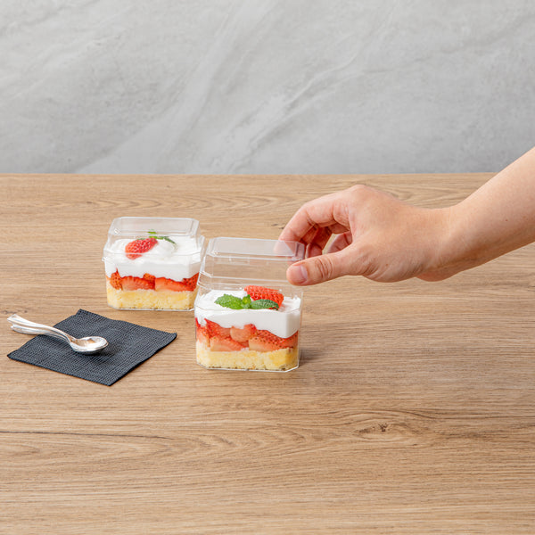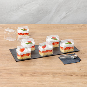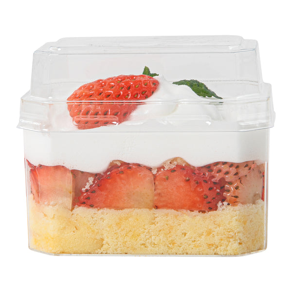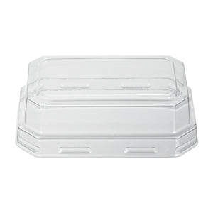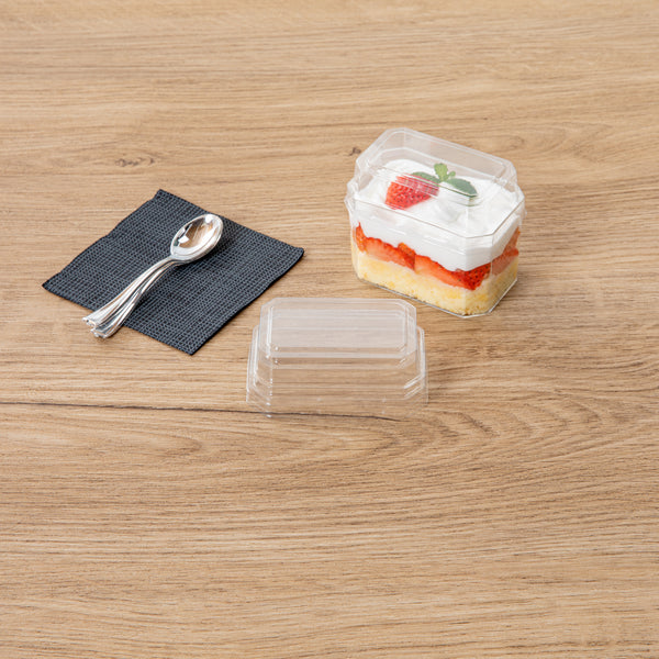 Elevate your dessert presentation with our Mini Serve Rectangle Clear Plastic Dome Lids. Crafted from durable PS plastic, these dome lids are built to withstand the demands of any foodservice environment. With their dome design, these plastic dome lids provide extra space for your delectable treats, ensuring they stay intact and visually appealing. Perfectly suited for cold foods, these recyclable clear dome lids are ideal for serving all kinds of desserts. The clear finish of these plastic lids allows for easy identification and display of your desserts, adding convenience to your food service operations. Designed to be stackable, these clear plastic lids optimize storage space and streamline your dessert preparation process. These disposable dessert cup lids provide a seamless cleaning solution after large events. Pair them with our 3-ounce dessert cups (RWP1421C-25), enhancing their functionality and aesthetic appeal. These plastic dome lids measure 3.25 inches in length by 2 inches in width by 1.25 inches in height, providing ample coverage for your dessert cups. Sold in a 25 count box. Dessert cups are available and sold separately.